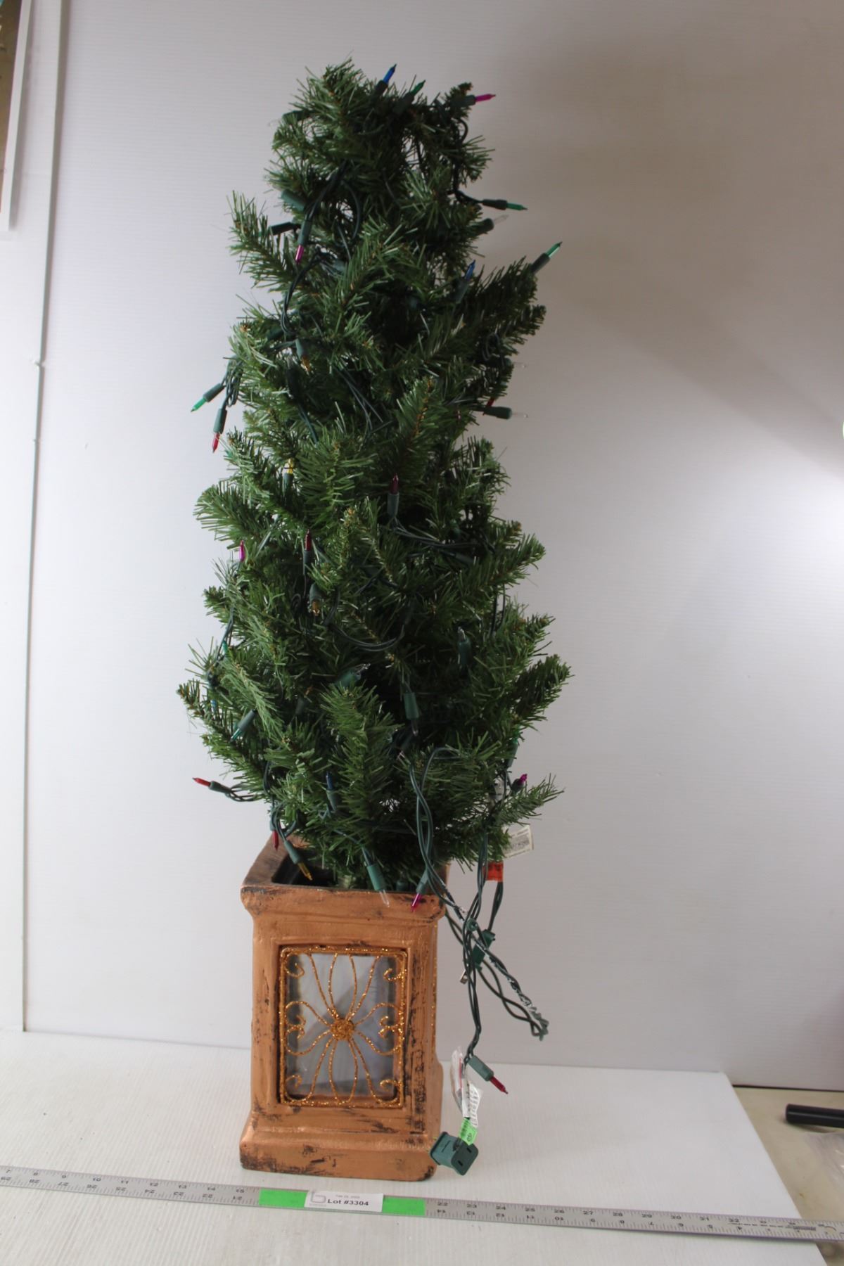 Holiday Time 4 Foot Tall Potted Christmas Tree with Lights- Powers On