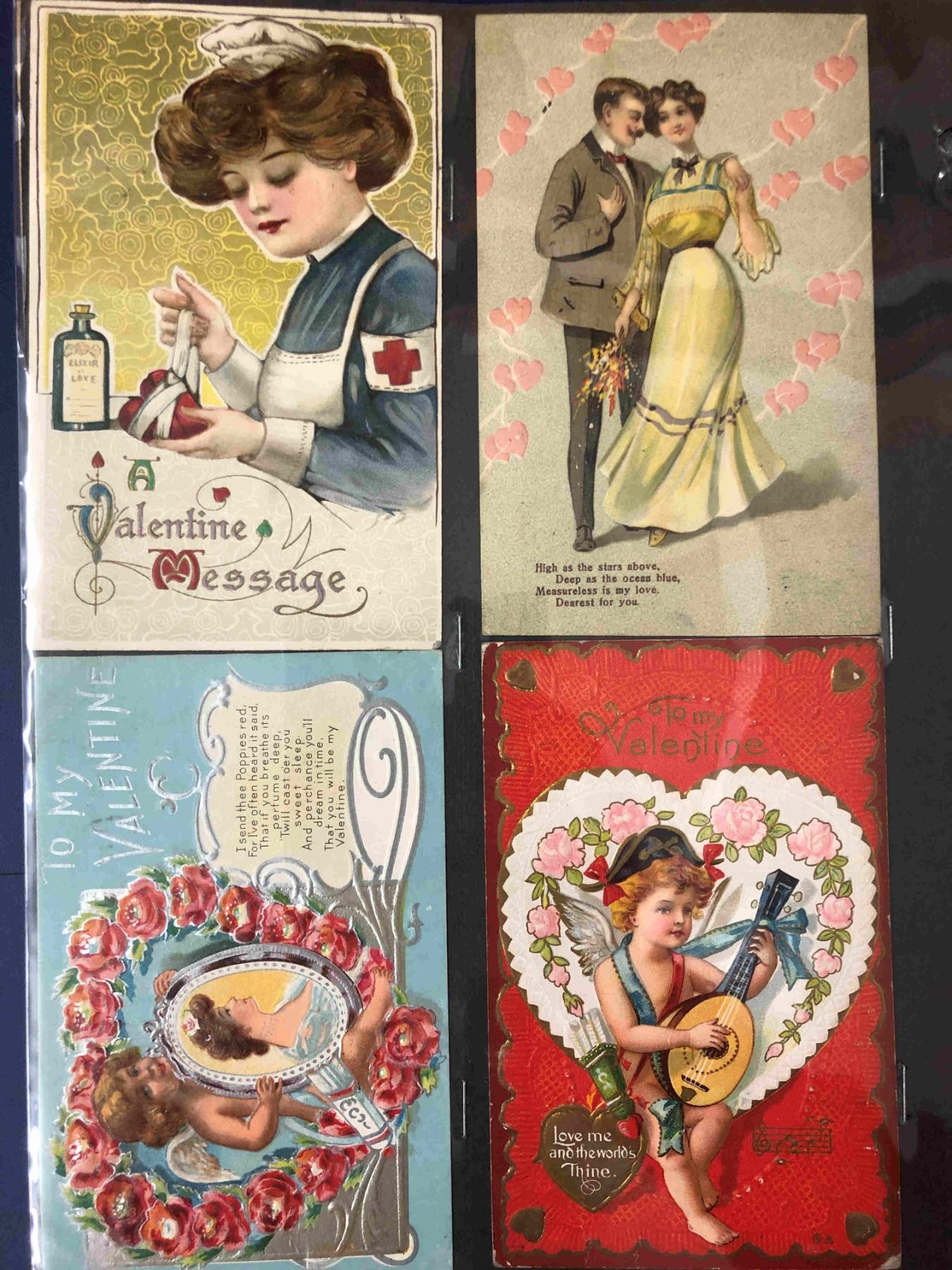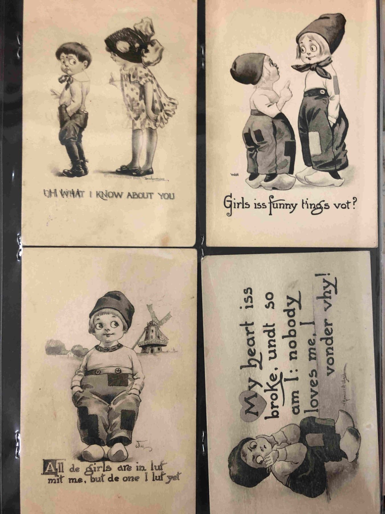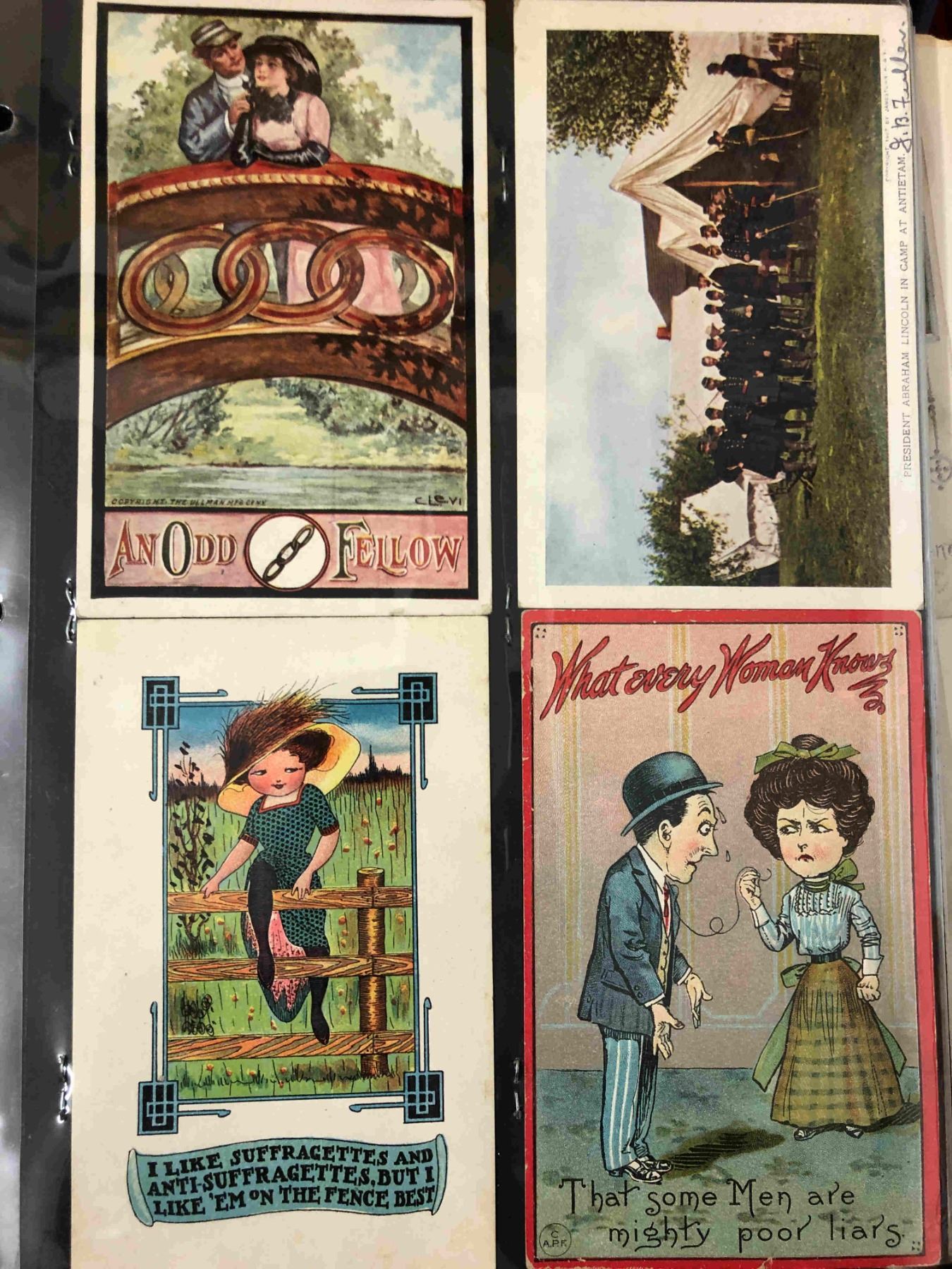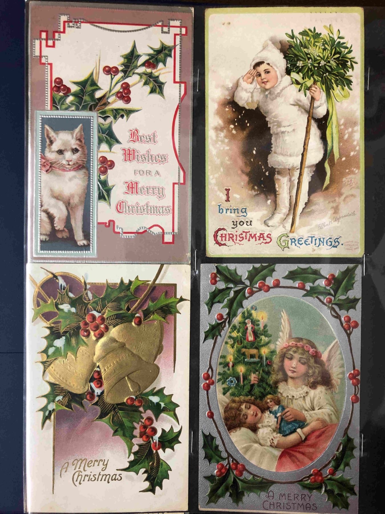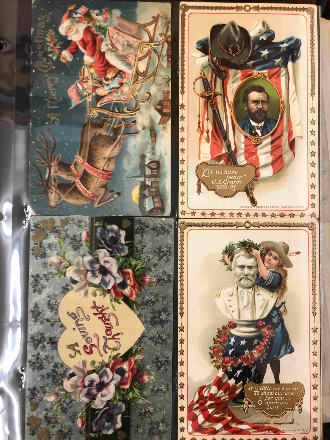 Holiday album of over 225 cards. Album contains: Santa, Patriotic, Valentines, Children, Ladies, St. Patricks, signed artists, Winsch, Thanksgiving, Easter & More