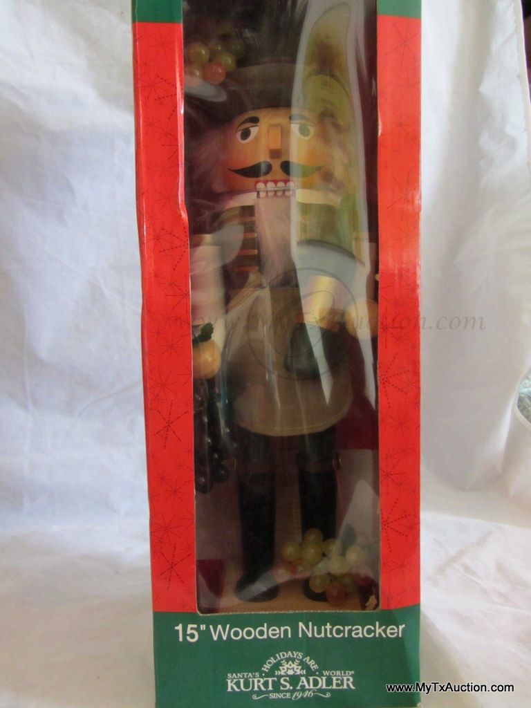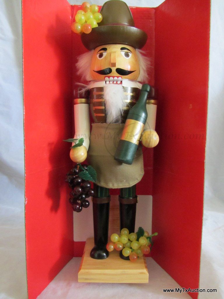 Kurt S. Adler Holidays presents # J1160 a 15" Wooden Wine Grower/Maker Nutcracker in the original box in mint condition. This is a great piece.