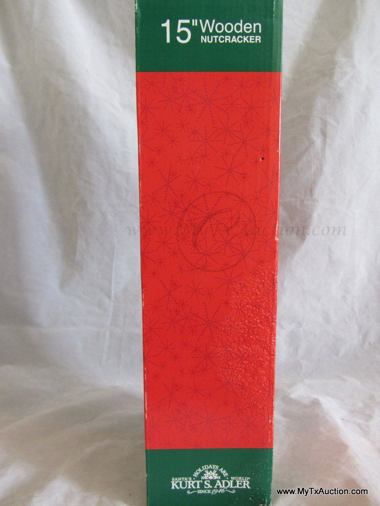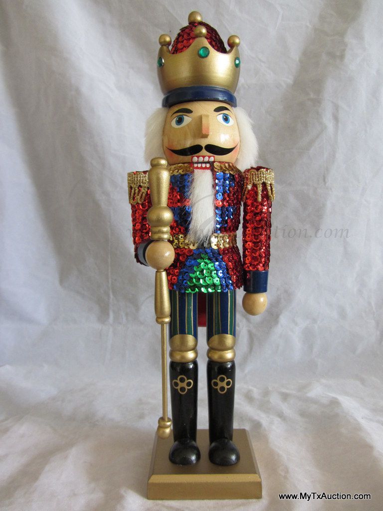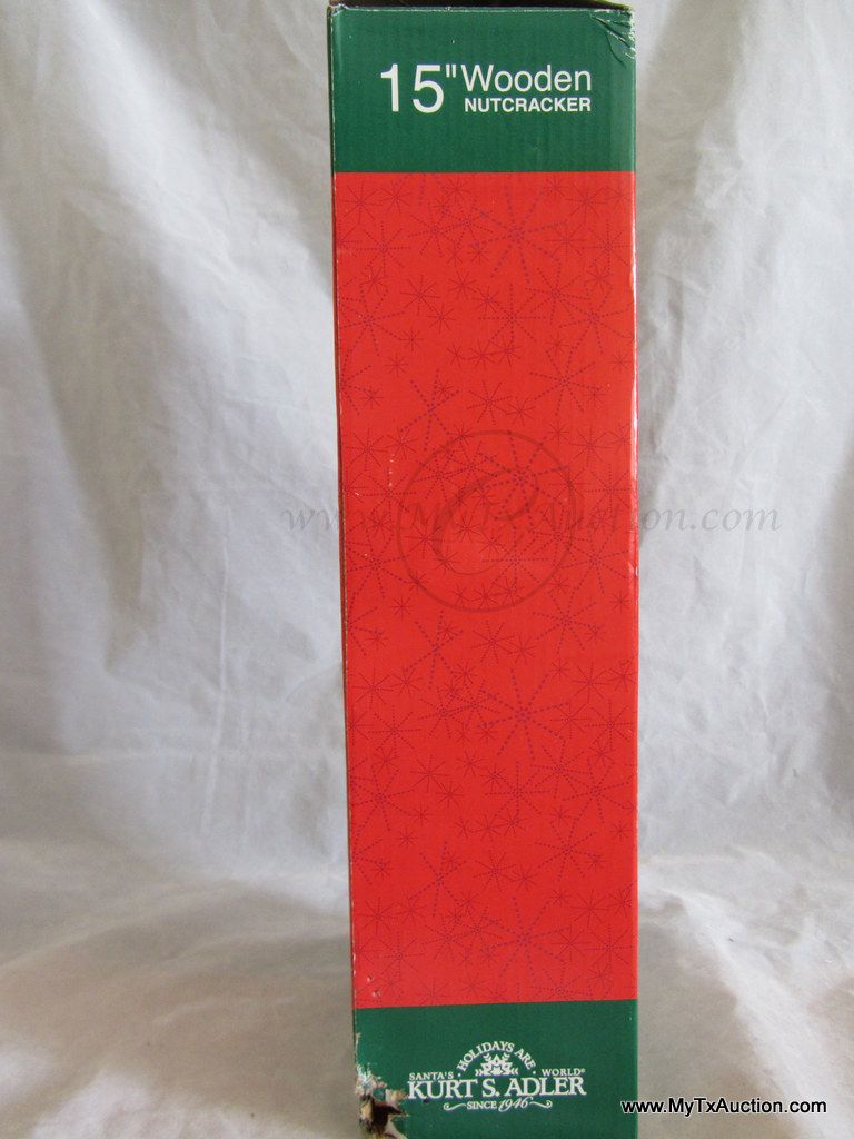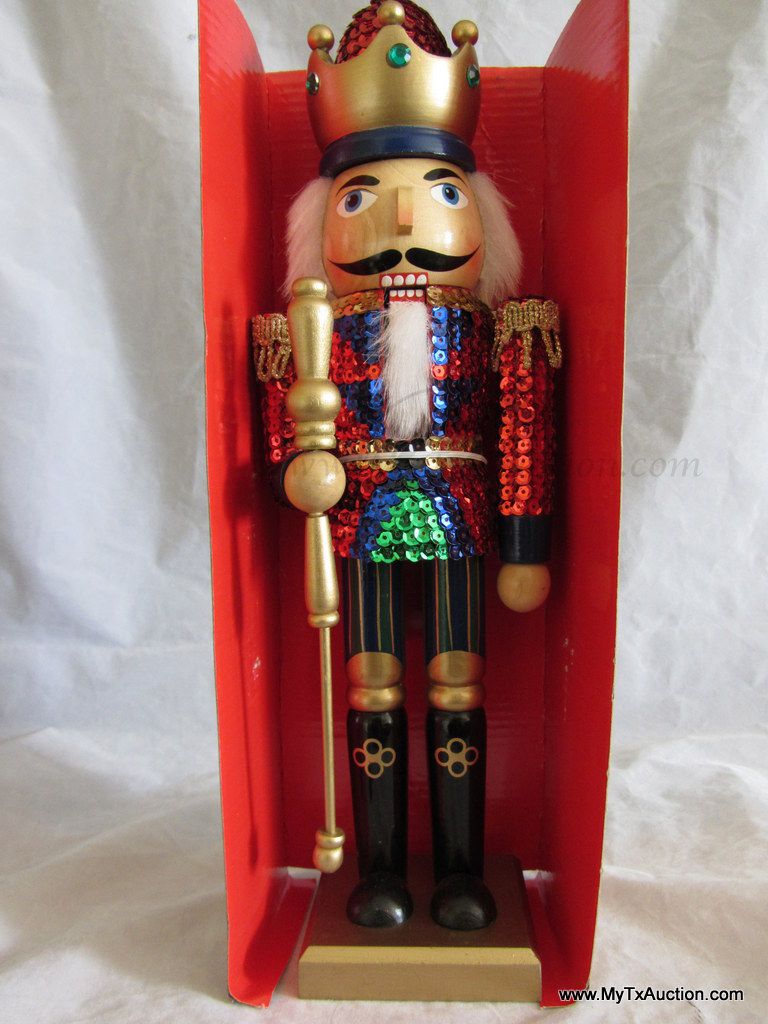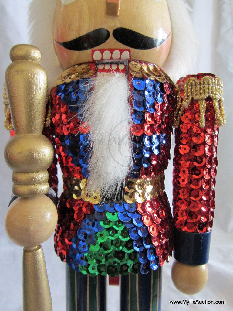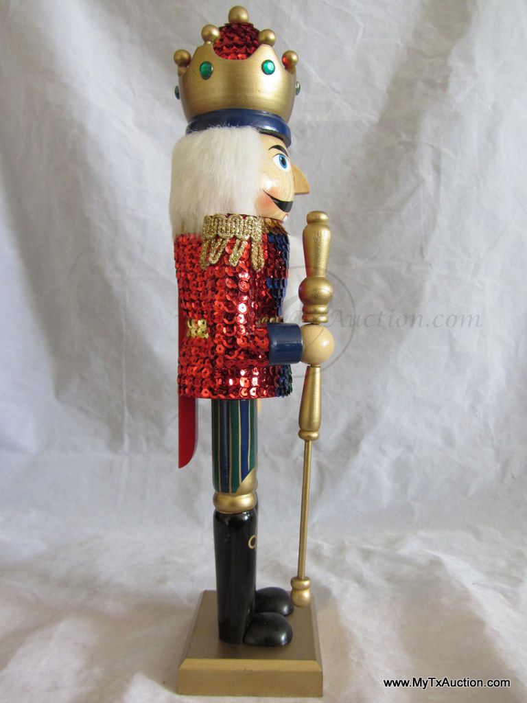 Kurt S. Adler Holidays are Santa's World Collection Nutcracker presents this 15" Wooden Sequins Red King Christmas nutcracker in original box NOTE: box has damage (See images for details)