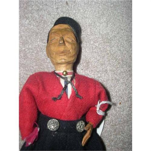 This is a hand carved wood head doll. What a great fellow to represent an international country- Holland. It is fully marked. On the back there is a label at the waist that says Dovina - Rotterdan, Holland and on the wooden shoes are stamped Made in Holland. He is 8" tall. He has no holes or rips or tears in his clothing. He has one hand carved from wood and it has a separate thumbe and lines that form the fingers. The other hand is put in his pocket and never had a hand on it. The hat is black with the top red and is made from the same material as the clothing. If you like different, then this is one you won't see often. He's a great fellow. He is from a smoke free environment. If you can love him, please bid. Buyer to pay $15 for U.S. shipping, insurance,and handling. Thanks for viewing.