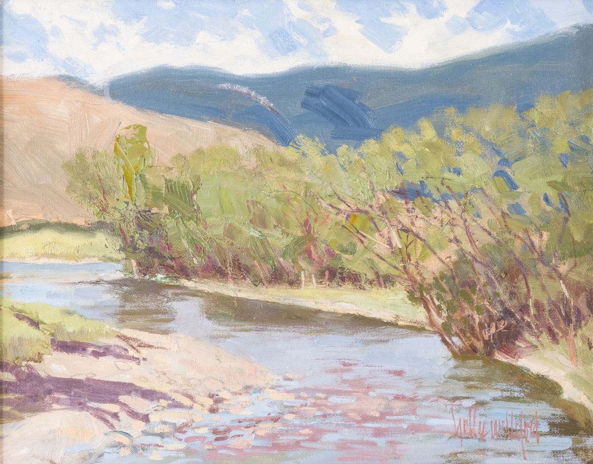 Hollis Williford (1940-2007). A Bend in the South Fork. 11" x 14" oil on canvasboard. Signed lower right.