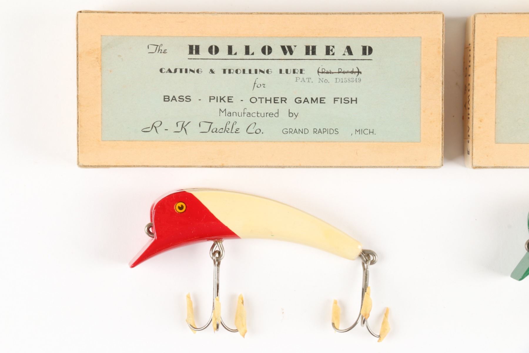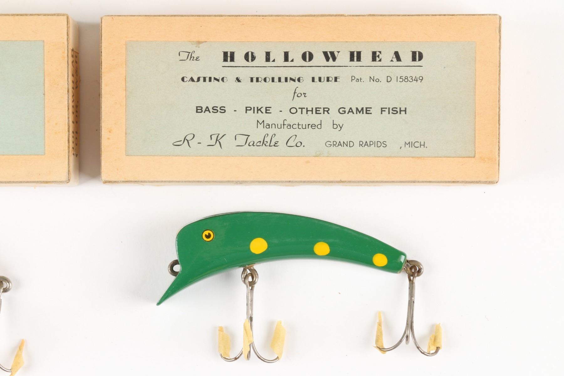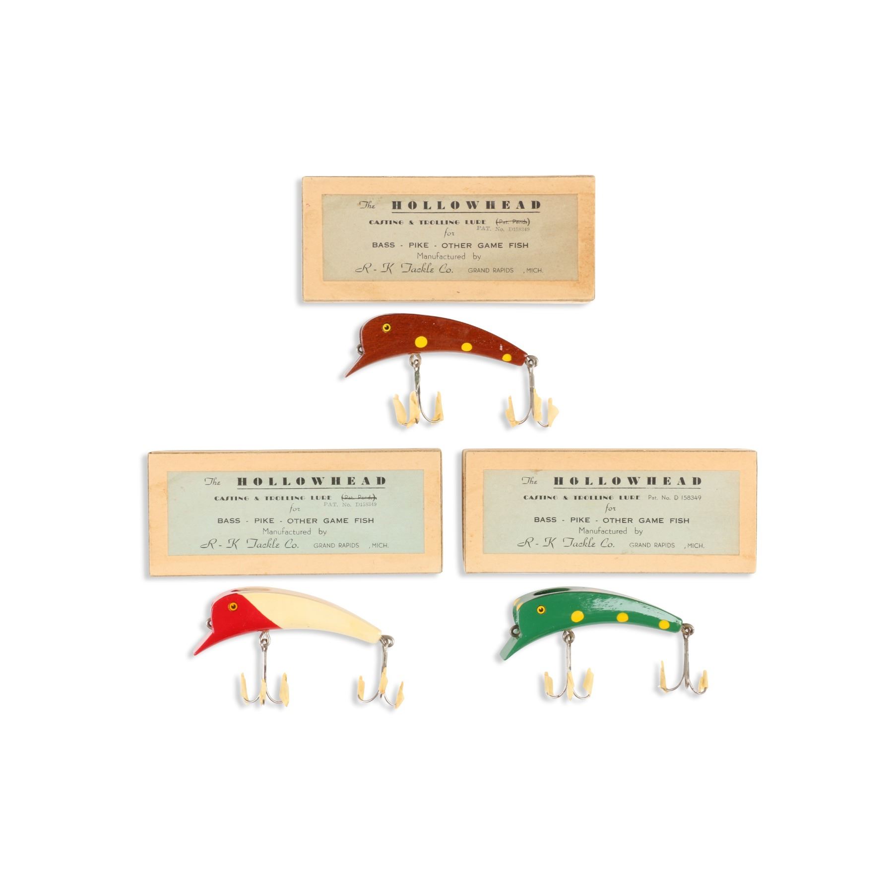 R. K. Tackle Co., United States. Boxed. Material: Wood. Quantity: 3. Grade: EX. 5.25" boxes Est. $125-150.