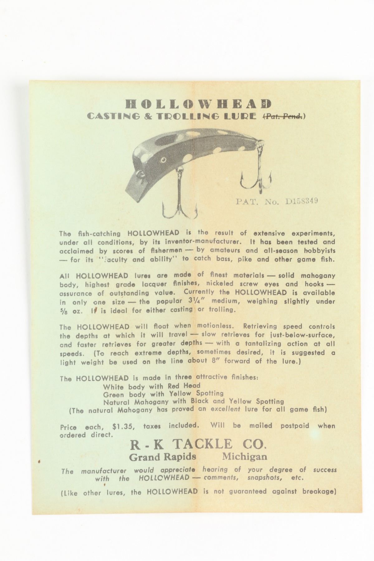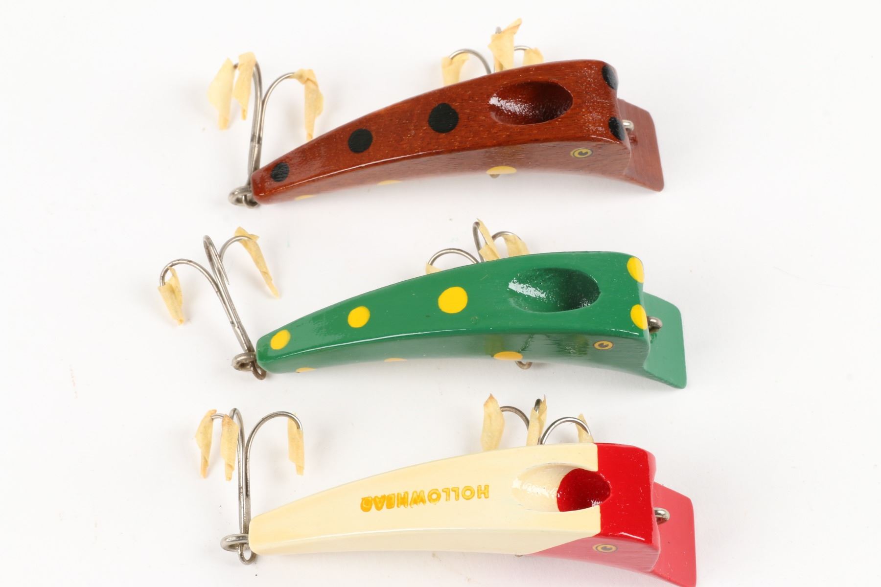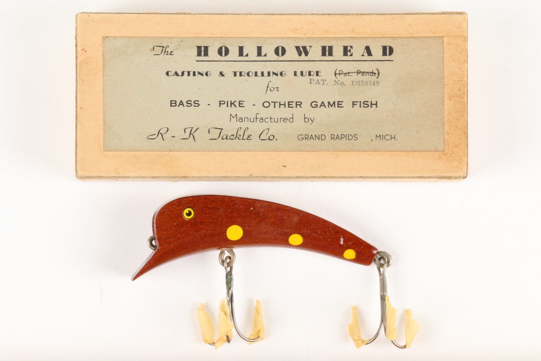 R. K. Tackle Co., United States. Boxed. Material: Wood. Quantity: 3. Grade: EX. 5.25" boxes Est. $125-150.