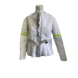 Other Space (2015) - custom made, white neoprene with gray netted belt and grey zipper lined, test jacket. Jacket is unfinished in zipper area and col