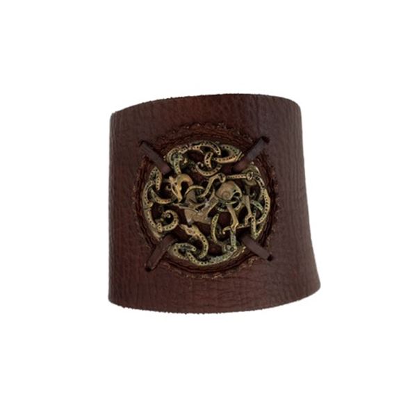 Kaulder's (Vin Diesel) screen worn, hero leather wrap wrist band with medallion and velcro closure. This wrist band was worn throughout the film...