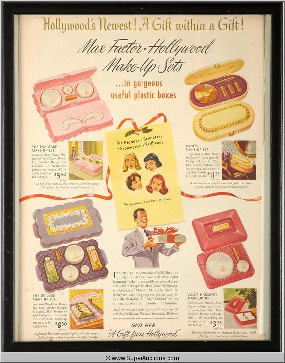 Framed Hollywood Make-Up Sets Advertisement "Hollywood's Newest~ A Gift within a Gift! from the Max Factor Collection {12" L x 15" H}