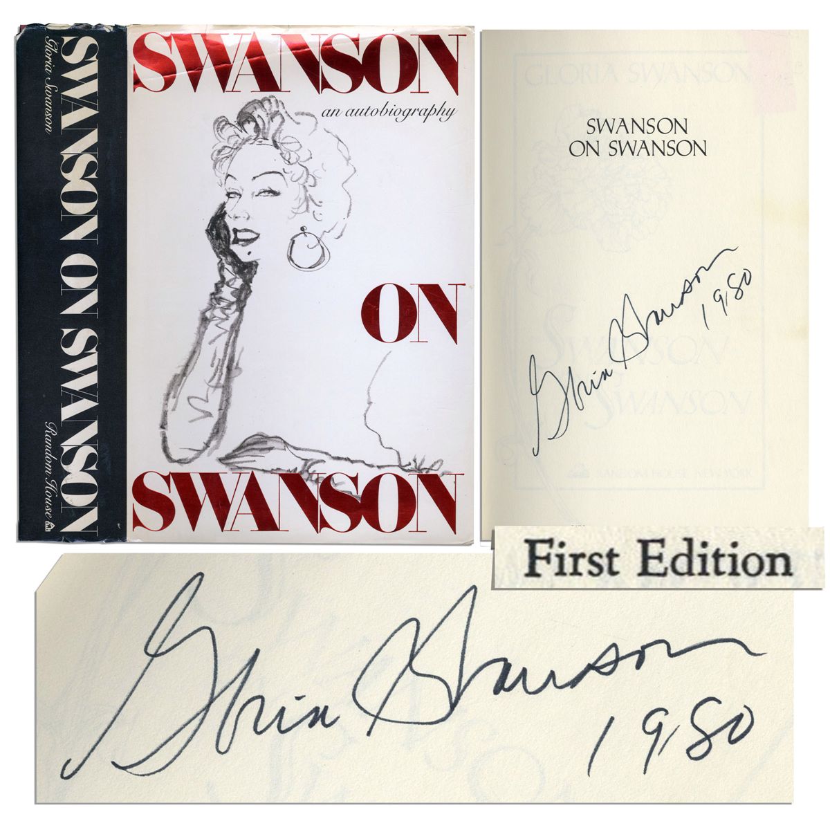 Memoir signed by the silver screen star of early cinematography, Gloria Swanson. She pens, ''Gloria Swanson / 1980'' upon the half title page of her autobiography, ''Swanson On Swanson.'' Random House: New York: 1980. Stated first edition with original dustjacket is in very good plus condition.