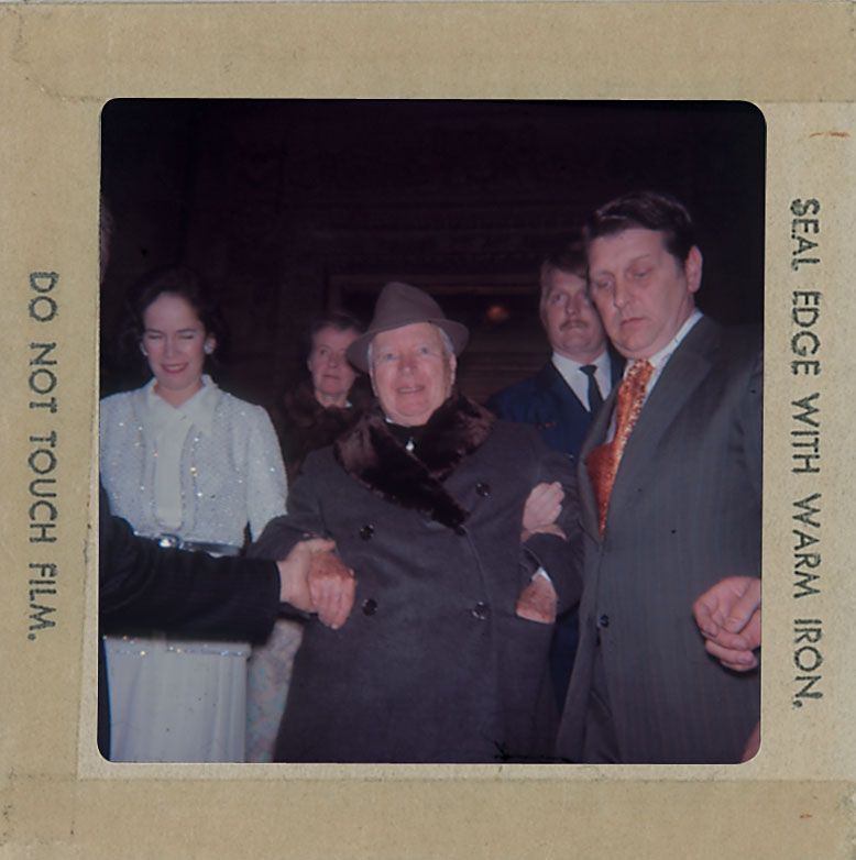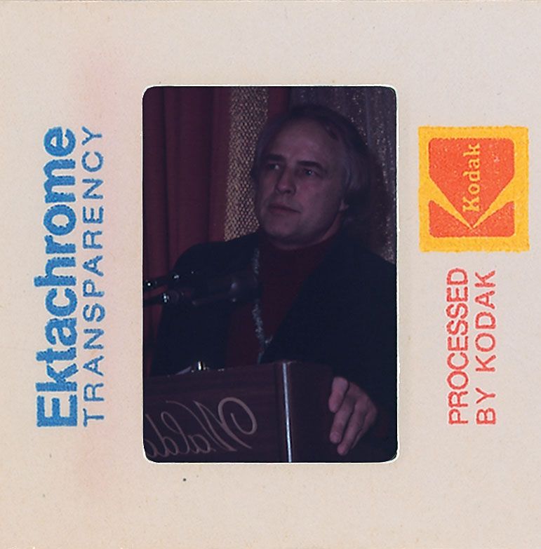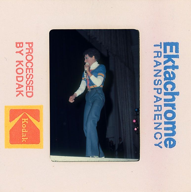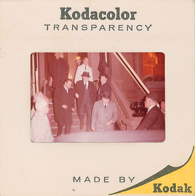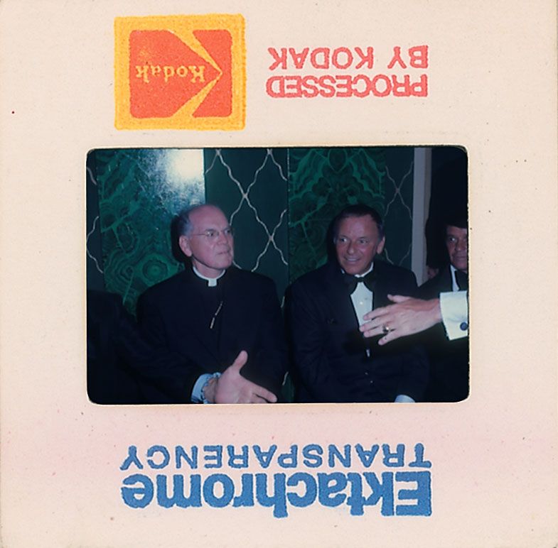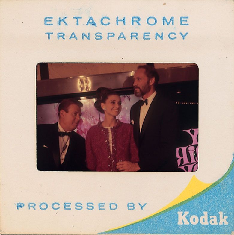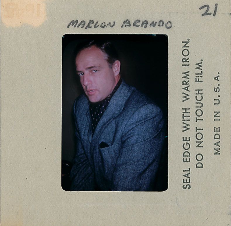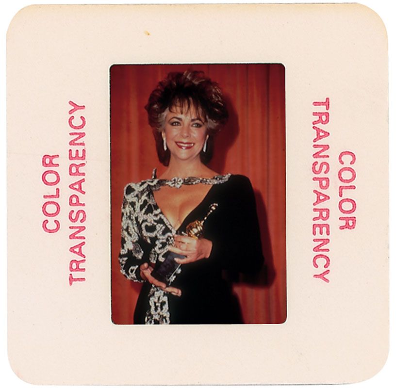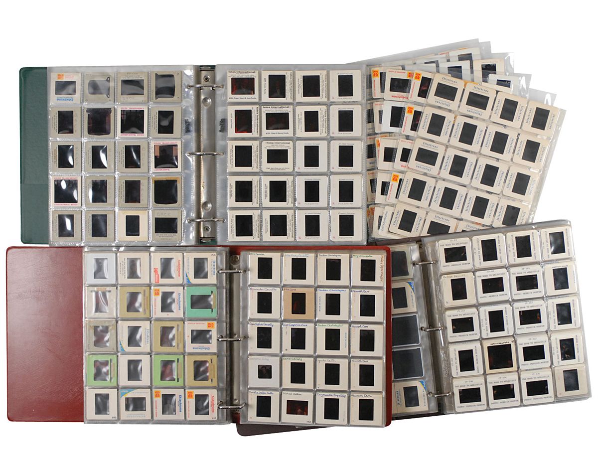Enormous collection of over 2400 original transparencies, almost all color, many taken by a lifelong collector dating from the 1950s through the early 1990s. Photos include images from various award ceremonies (including the Academy Awards), countless candids taken on the street or in airports, and some professional photos mixed in as well. The entire collection is housed in three three-ring binders. Photos are of actors, actresses, directors, musicians and other celebrities, with most identified on the reverse by the collector, with multiple images of some of subjects. Photos include: Josephine Baker, Lucille Ball, Tallulah Bankhead, Brigitte Bardot, The Bay City Rollers, Warren Beatty, The Bee Gees, Ingrid Bergman, Milton Berle, Ernest Borgnine, Marlon Brando, Yul Brynner, Richard Burton, Charlie Chaplin, Joan Crawford, Tony Curtis, Sammy Davis, Jr, Faye Dunaway, The Everly Brothers, Henry Fonda, Joan Fontaine, Glenn Ford, Andy Gibb, Alec Guinness, Richard Harris, George Harrison, Rex Harrison, Rita Hayworth, Margaux Hemingway, Audrey Hepburn and Jose Ferrer, Audrey Hepburn, Katharine Hepburn, Charlton Heston, Alfred Hitchcock and Tippi Hedren, Alfred Hitchcock, Dustin Hoffman, Bob Hope, Dennis Hopper, John Houseman, Rock Hudson, Jeff Hunter, John Huston, KISS, John Lennon and Yoko Ono, Madonna, Liza Minelli, Marilyn Monroe, Patricia Neal, Paul Newman, Arnold Schwarzenegger, Frank Sinatra, Barbra Streisand, Elizabeth Taylor, Peter Ustinov, Raquel Welch, and Mae West. In overall fine condition. A meticulous collection containing many one-of-a-kind images.
