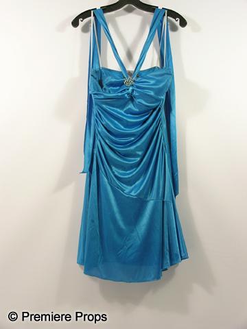 Blue-green with shiny metal encrusted flower at the bust, tie straps "Jodi Kristopher" dress. (size L)