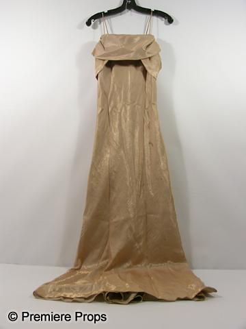Gold with fabric at the bust strapless "Betsy & Adam" long dress. (size 10)