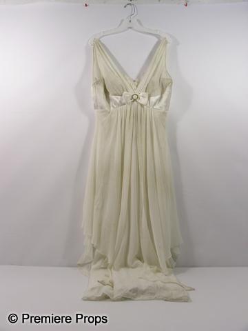 Off-white lacey with jewel design at the the bust, zipper in the back, long dress. (no size, dirty)
