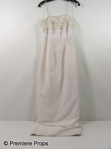 White with off white floral fabric at the bust, shiny straps, "Loralie" long dress. (size 10)