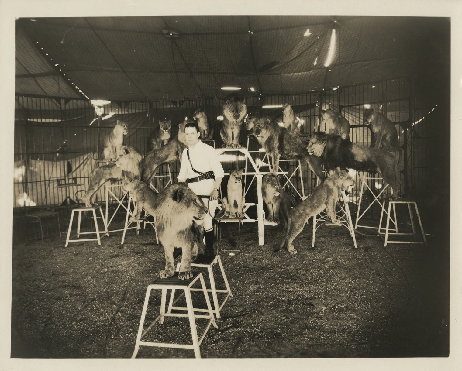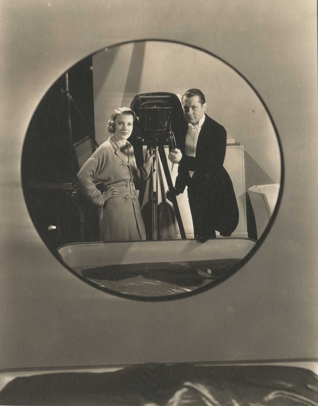 65. Hollywood behind-the-scenes (20+) photographs. (Various Studios, 1930s-1940s) Collection of (20+) vintage original gelatin silver single- and double-weight, glossy and matte photographs ranging in size from 3.75 x 4.5 in. to 11 x 14 in. Featuring on-set and studio lot candids as well as interesting and unusual publicity shots. Subjects include Karl Freund, Humphrey Bogart, Robert Montgomery, Adolphe Menjou, a studio lion tamer, and more. A wild chronicle of the surreal vibrancy on view at the studios during the Golden Age. Originally from the collection of Warner Bros. photographer Mickey Marigold. Exhibiting some toning, creasing, border and corner wear, surface marring, and handling. Majority vintage good to very good. $200 - $300