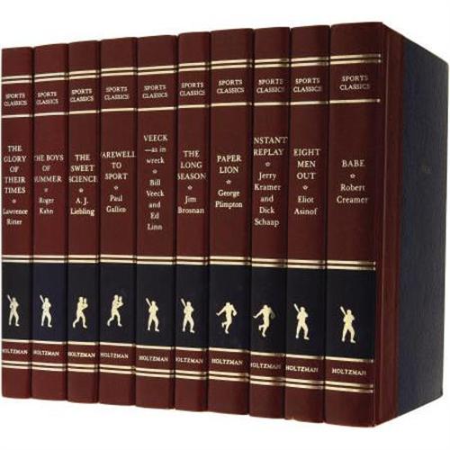 <B>Holtzman Sports Classics Signed Sports Books Lot of 10.</B></I> Attractive matched set compiles ten of the best sports titles issued in the last half century, bound in attractive red and blue leather with golden embossing. Each book is signed in unimprovable blue ink by the author. Featured are: <I>Instant Replay</B></I> by Jerry Kramer, <I>Eight Men Out</B></I> by Eliot Asimov, <I>Babe</B></I> by Rober Creamer, <I>Paper Lion</B></I> by George Plimpton, <I>The Long Season</B></I> by Jim Brosnan, <I>Veeck--as in Wreck</B></I> by Bill Veeck, <I>Farewell to Sport</B></I> by Paul Gallico, <I>The Sweet Science</B></I> by A.J. Liebling, <I>The Boys of Summer</B></I> by Roger Kahn, <I>The Glory of Their Times</B></I> by Lawrence Ritter. An elegant addition to your study/trophy room, or a great gift for the literate sports fan in your life. <I>LOA from PSA/DNA. LOA from James Spence Authentication.</B></I><BR><BR><b>Shipping:</b> Books & Catalogs (<a target="_blank" href="http://www.heritageauctions.com/common/shipping.php">view shipping information</a>)