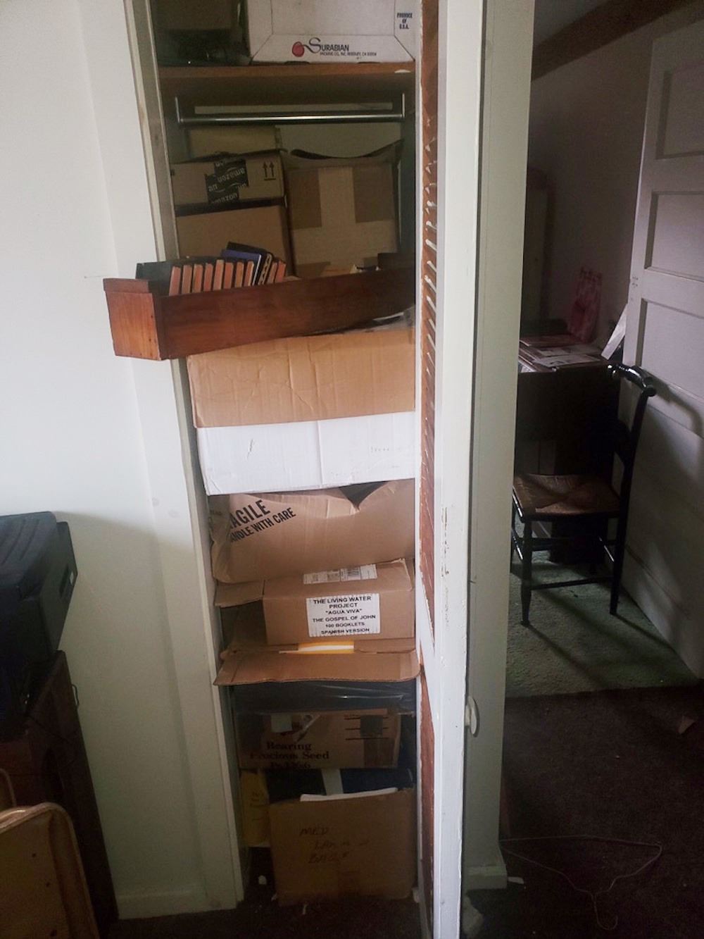 Closet full of books including Bibles, Prayer and Hymn books, being sold as found from the lifetime collection.