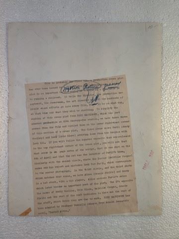 Holy Matrimony (20th Century Fox, 1943) cross plot shooting schedule. Comedy. Starring Monty Woolley, Gracie Fields, Laird Cregar, Una O'Connor, Alan Mowbray, Melville Cooper, Franklin Pangborn, Ethel Griffies, Eric Blore, George Zucco, Fritz Feld. Directed by John M. Stahl. Light edge wear, creases, small tear, tape, light stains. Very Fine. (11"x14").