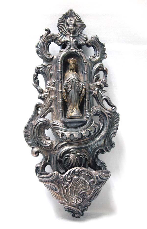 Holy Water Font, measures 10.25''L x 4.5''W x 1.75''H, cast metal