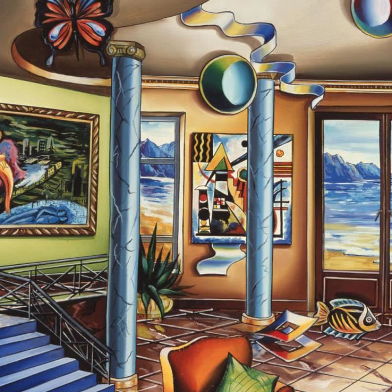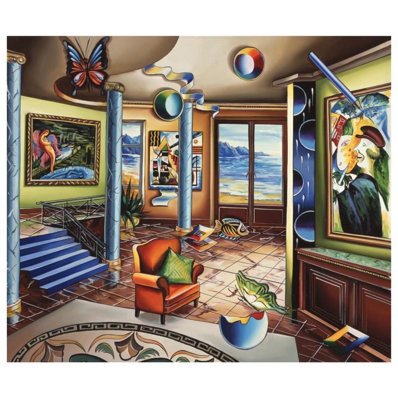"Homage to Chagall" is a limited edition Giclee on Canvas by Alexander Astahov. The piece is numbered, hand siged by the artist, and come with a letter of authenticity. Measures approximately 20" x 24".