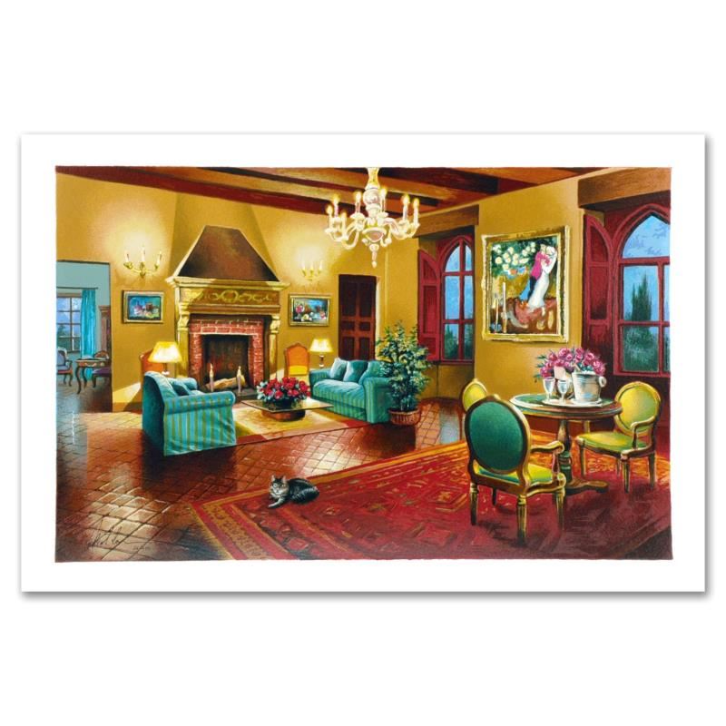 "Homage to Chagall" is a limited edition lithograph on paper by Anatoly Metlan, numbered and hand signed by the artist. Includes Certificate of Authenticity. Measures approx. 24" x 16" (with border), 22" x 14" (image).