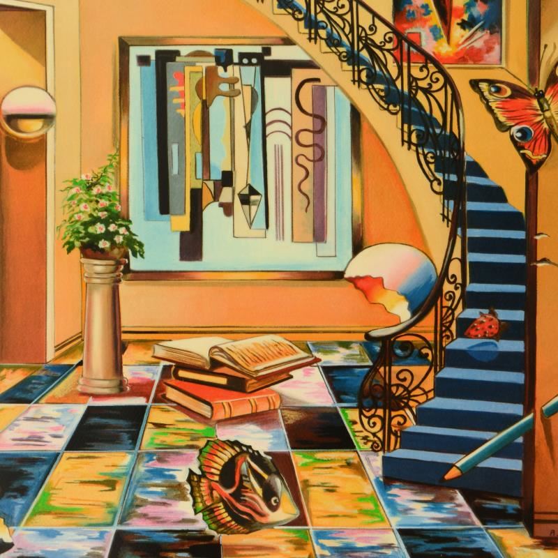 "Homage to Miro" is a limited edition serigraph on paper by Alexander Astahov, numbered and hand signed by the artist. Measures approx. 26.5" x 19" (image).