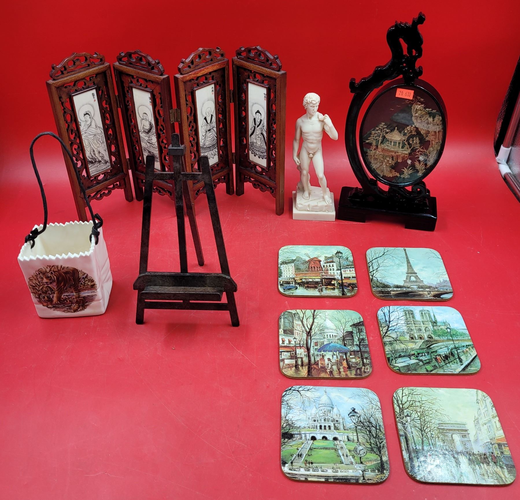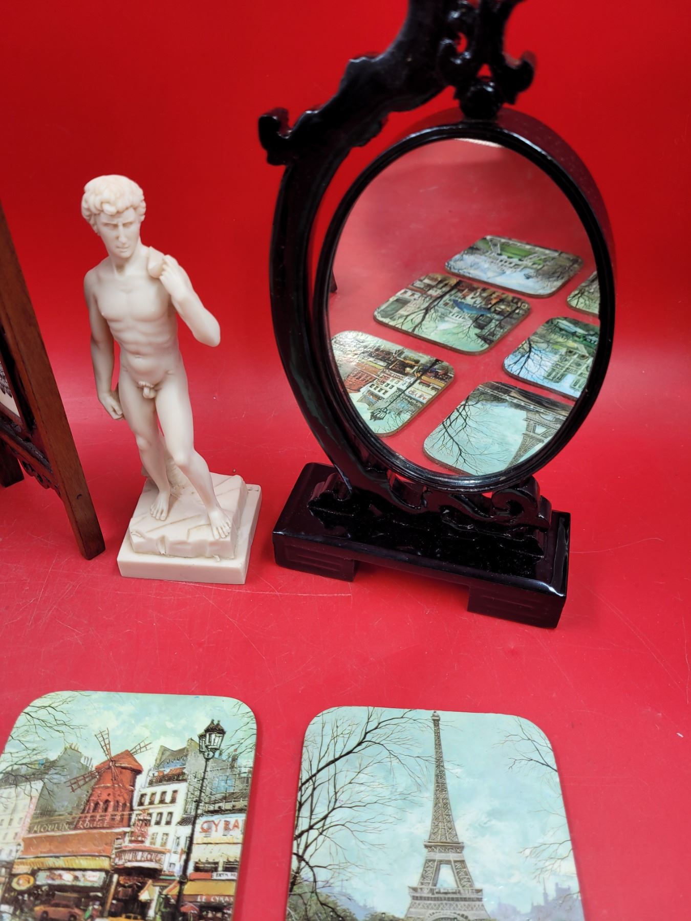 Home Decor Lot w/ Chinese Cork Diorama Mirror, Mini Statue of David, & More
