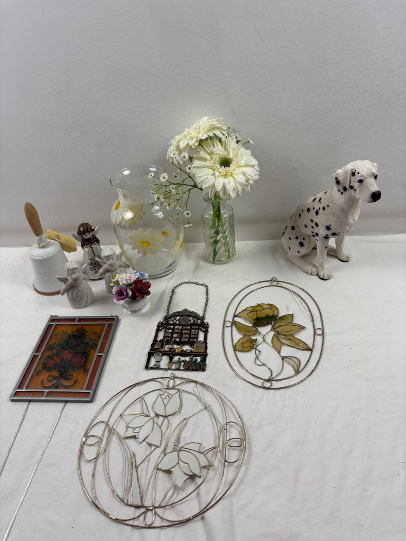 Includes a Living Stone Dalmation (9"H), Unterweissbach Bell, Floral vases, and more