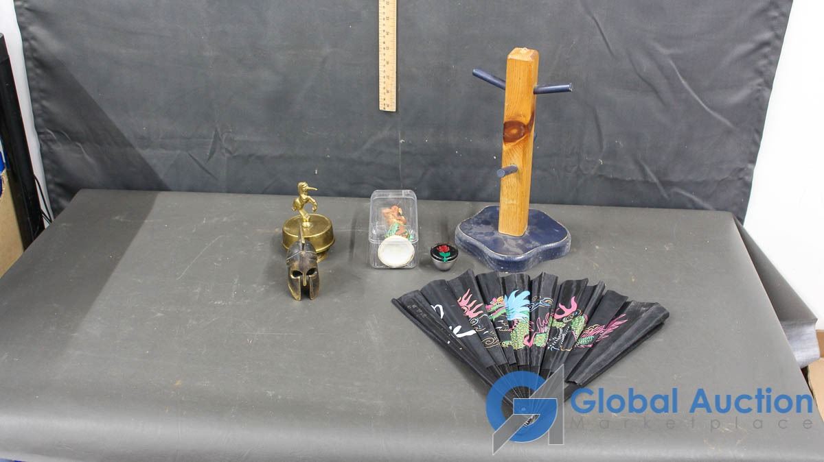 Home Decor, Wooden Mug Tree, Decorative Fan, Brass Unicorn Music Box, etc.
