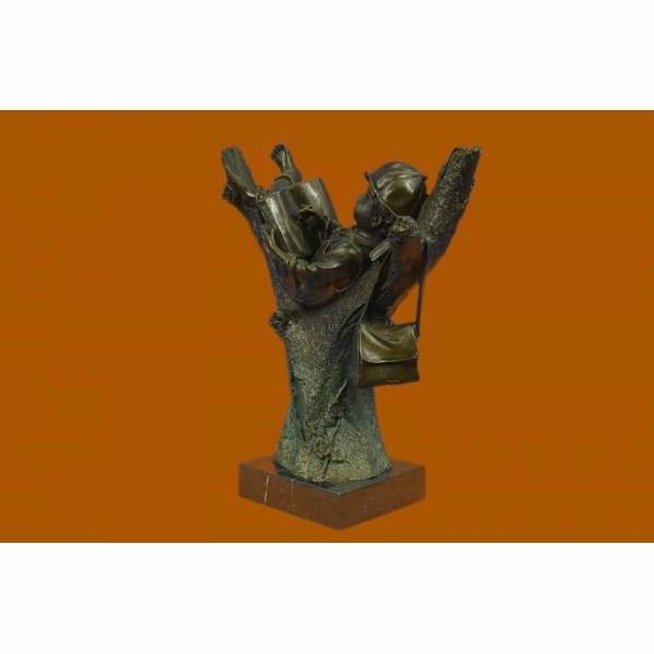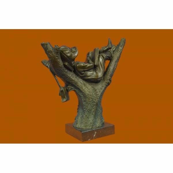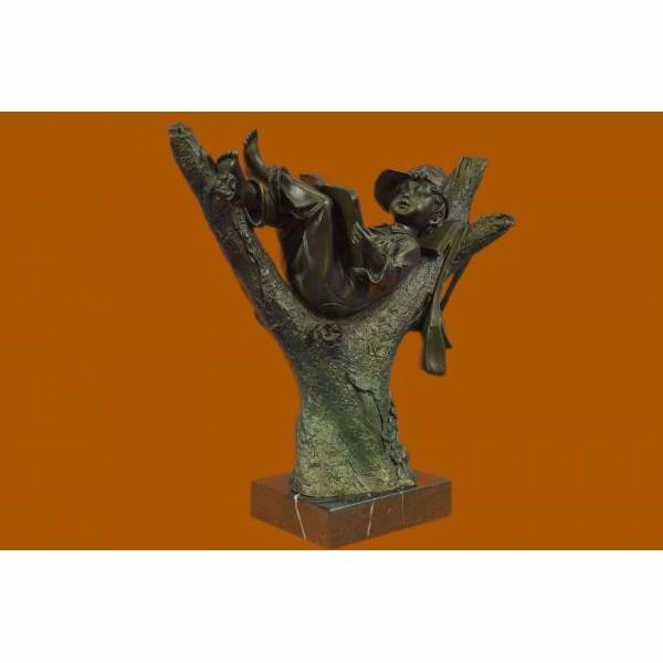 Boy Reading On Top Of TreeThis bronze statue measures 12†high by 12†long. It is handmade and cast in the traditional Lost Wax Casting Process and is signed by artist Art Taylor. This insures a quality bronze sculpture that may be passed down from generation to generation. This is a good piece for outdoor gardens as well as indoor decoration, an entry way, or a park. This piece will last forever outdoors. It is made to stand up to the elements and will look great wherever you put it with little or no maintenance. Condition : This sculpture is in perfect condition. Bronze Dimensions with Marble Base:Height 12" x Width 12" Marble Dimensions: 7" X 4" Height without base: 11 1/2" Weight : 1 1 LBS Inventory : 57X24727575