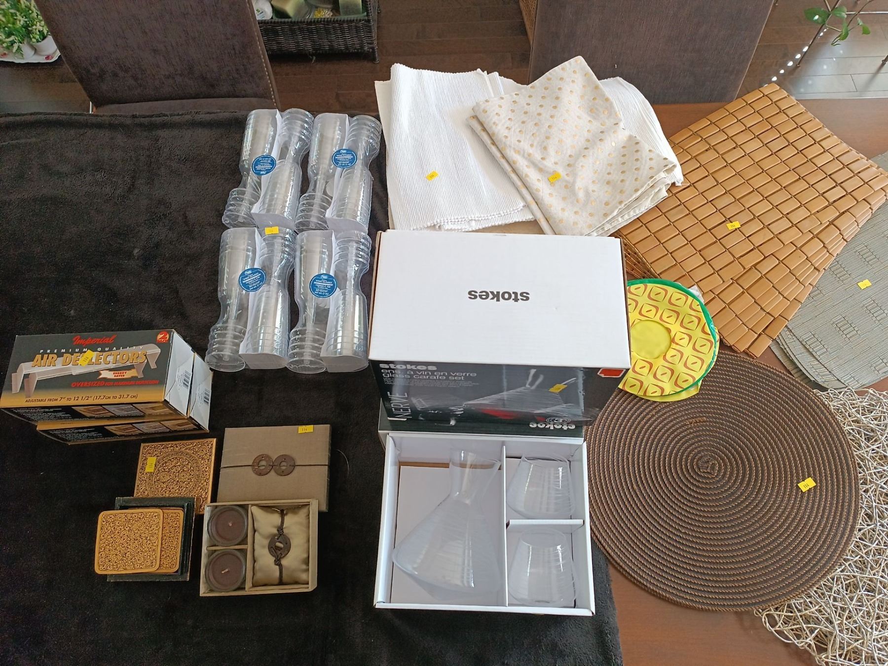 Home Items Including Table Placemats, Glasses, Inflatable Drink Holders, Air Deflectors and More!