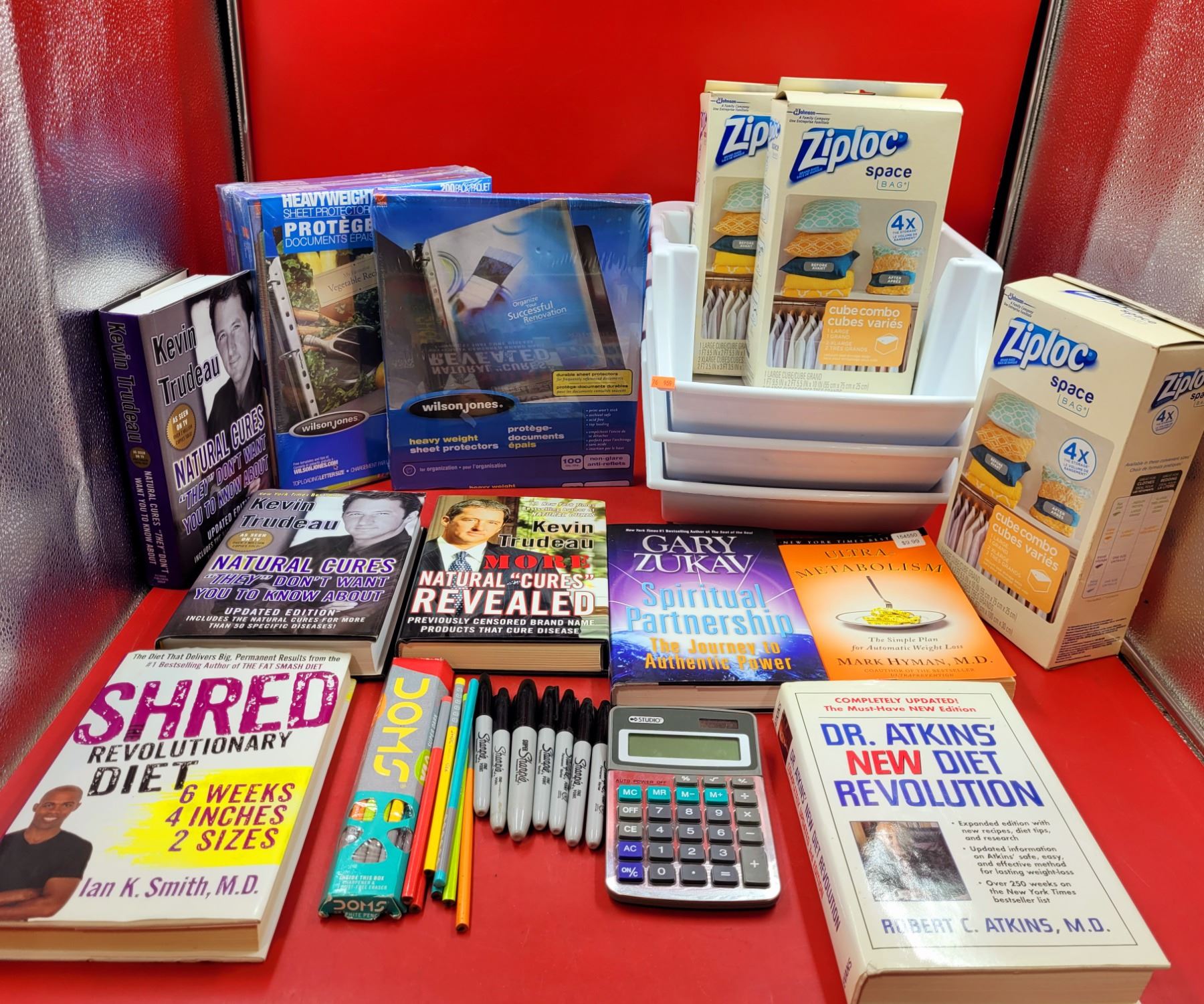 Home Organizing & Book Lot w/ Ziploc Space Bags, Heavy Weight Sheet Protectors, Diet Books, & More