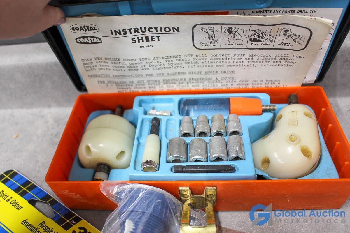 Home Project Supplies - Mask, Mud Scappers, Sanding Sponge, Power Tool Attachment Set