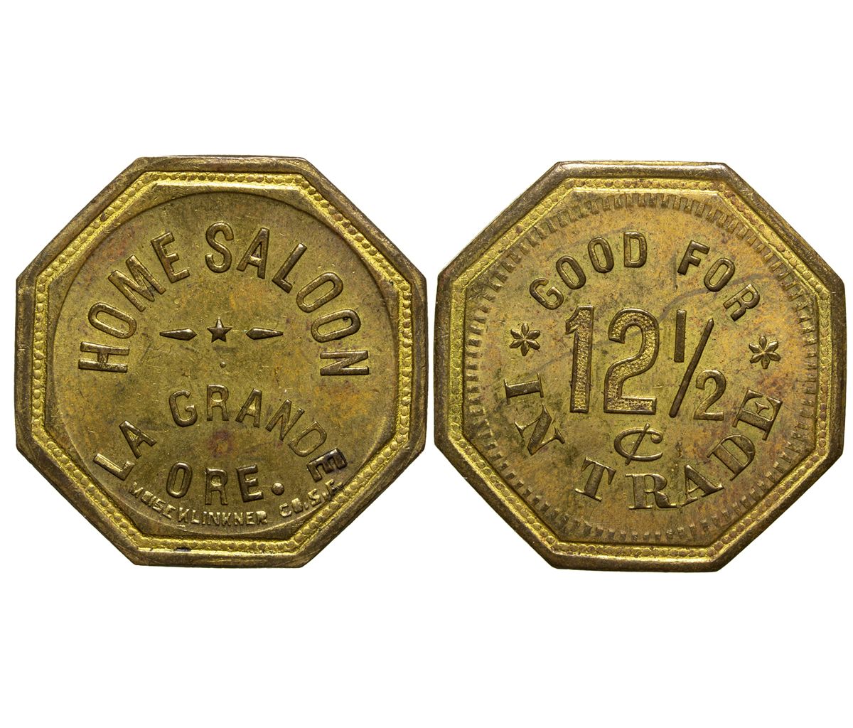 Obv.: Home Saloon /La Grande / Ore.; Rev. : Good For / 12 1/2c / In Trade. Oct., Br., 27mm. -60835