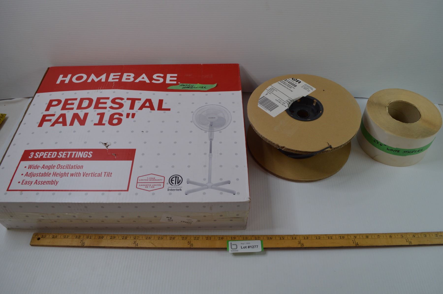 Homebase Pedestal Fan 16" + Screen Black PVC Spline + 6" x 4" White Stickers