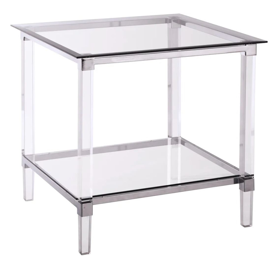 Homelegance Lyrica Clear Glass Square End Table with Acrylic Legs - RV: $799 CAD - H24" x 24" x 24" (3656-04)