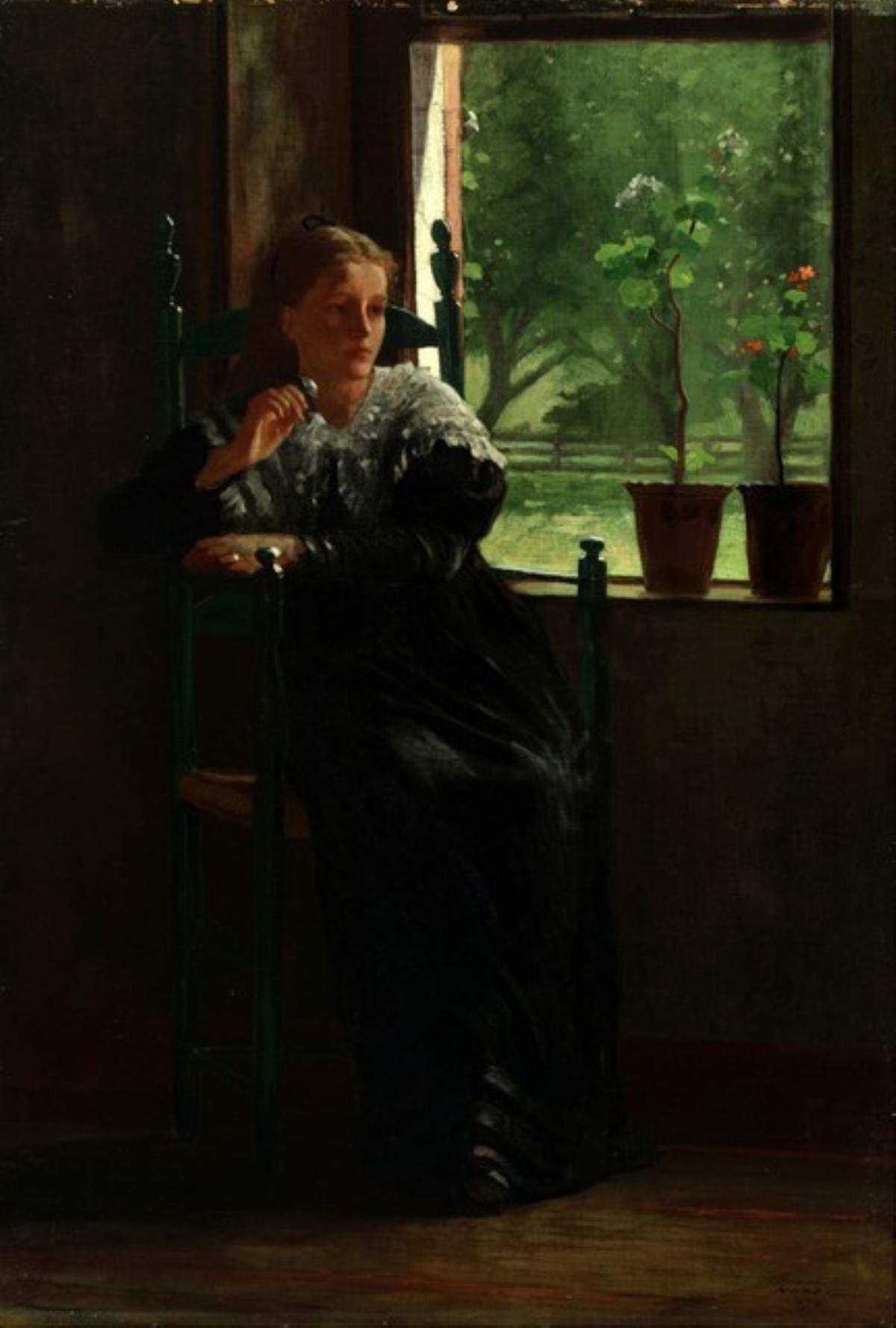 Artist: Winslow Homer - Title: At the Window - Medium: Fine Art Giclee on Canvas - Image Size: Approximately 32 inches x 21.5 inches - Framed: Unframed on Unstretched Canvas - Biography: Winslow Homer was born on February 24, 1836, in Boston, Massachusetts. When Homer was six, the family moved to Cambridge, Massachusetts. His mother was a painter and she encouraged Winslow to be artistic. When he was 19 years old, Winslow became an apprentice at John Bufford's lithographic firm. He started by copying other artists' designs. Later, he submitted his own original drawings to magazines, such as Ballou's Pictorial and Harper's Weekly to be published. In 1859, Homer moved to New York City and worked as a freelance illustrator. The next year, several of his paintings were displayed at the National Academy of Design.