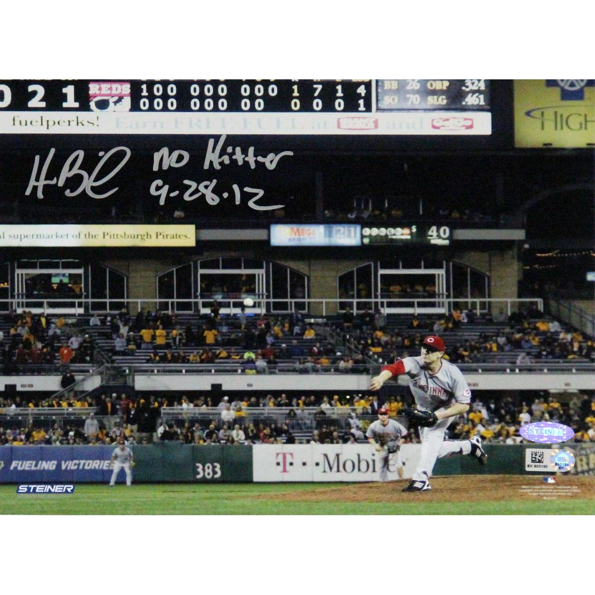 Homer Bailey Cincinnati Reds Pitching No-hitter Against Pirates Signed Horizontal 8x10 Photo w/ No Hitter 9-28-12 Insc