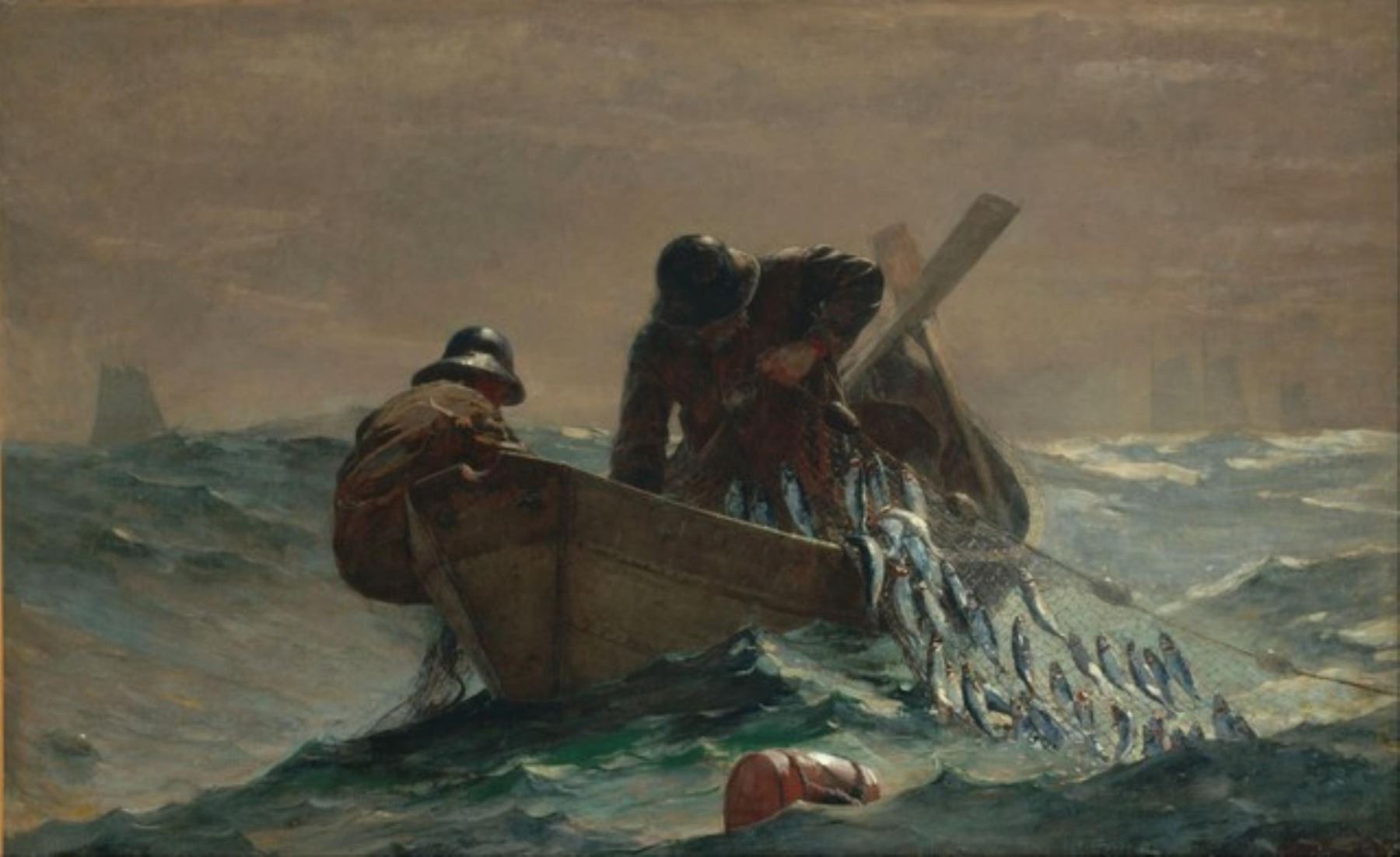 Artist: Winslow Homer - Title: The Herring Net - Medium: Fine Art Giclee on Canvas - Image Size: Approximately 19.5 inches x 32 inches - Framed: Unframed on Unstretched Canvas - Biography: Winslow Homer was born on February 24, 1836, in Boston, Massachusetts. When Homer was six, the family moved to Cambridge, Massachusetts. His mother was a painter and she encouraged Winslow to be artistic. When he was 19 years old, Winslow became an apprentice at John Bufford's lithographic firm. He started by copying other artists' designs. Later, he submitted his own original drawings to magazines, such as Ballou's Pictorial and Harper's Weekly to be published. In 1859, Homer moved to New York City and worked as a freelance illustrator. The next year, several of his paintings were displayed at the National Academy of Design.