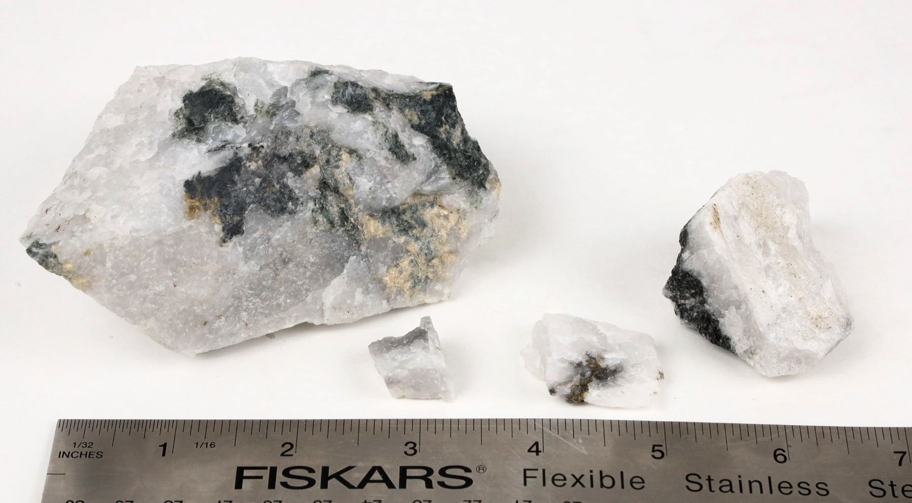 Homestake Mine Ore with Visible Gold from the 5000-5900 level. Dave Shaddrick was a key Mine Geologist at America's most important underground gold mine, the Homestake, for a number of years. We sold a number of his choice specimens in a prior sale and when cleaning out the garage an additional box full of high grade ore specimens, each with one or more specs of visible gold. In some cases the gold is a small wire or leaf or crystalline. Some are microscopic necessitating the use of a hand lens. But each piece has visible gold.