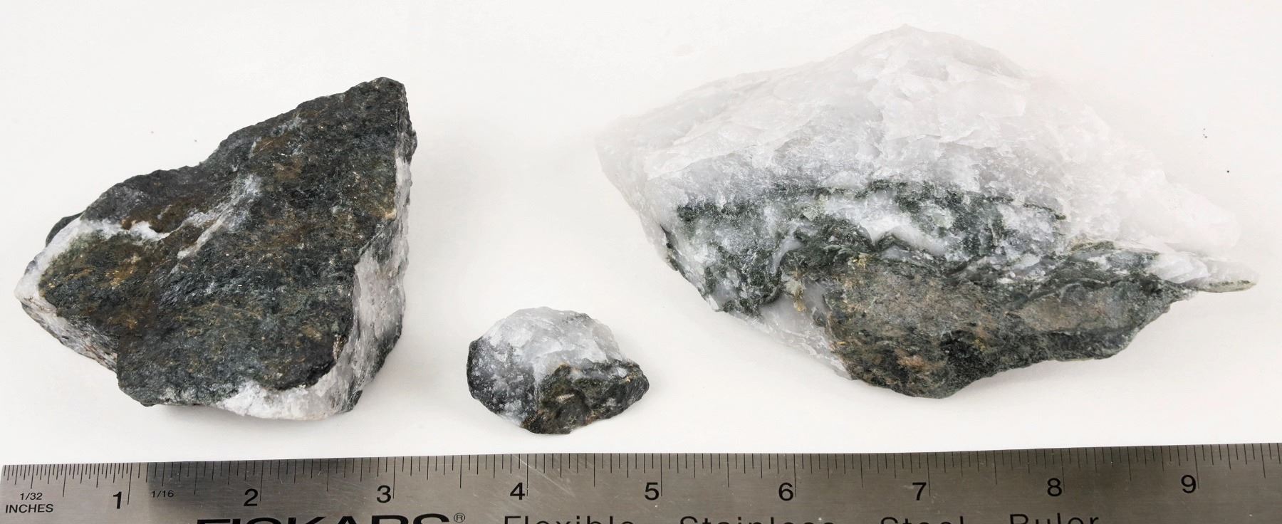 Homestake Mine Ore with Visible Gold from the 5000-5900 level. Dave Shaddrick was a key Mine Geologist at America's most important underground gold mine, the Homestake, for a number of years. We sold a number of his choice specimens in a prior sale and when cleaning out the garage an additional box full of high grade ore specimens, each with one or more specs of visible gold. In some cases the gold is a small wire or leaf or crystalline. Some are microscopic necessitating the use of a hand lens. But each piece has visible gold.