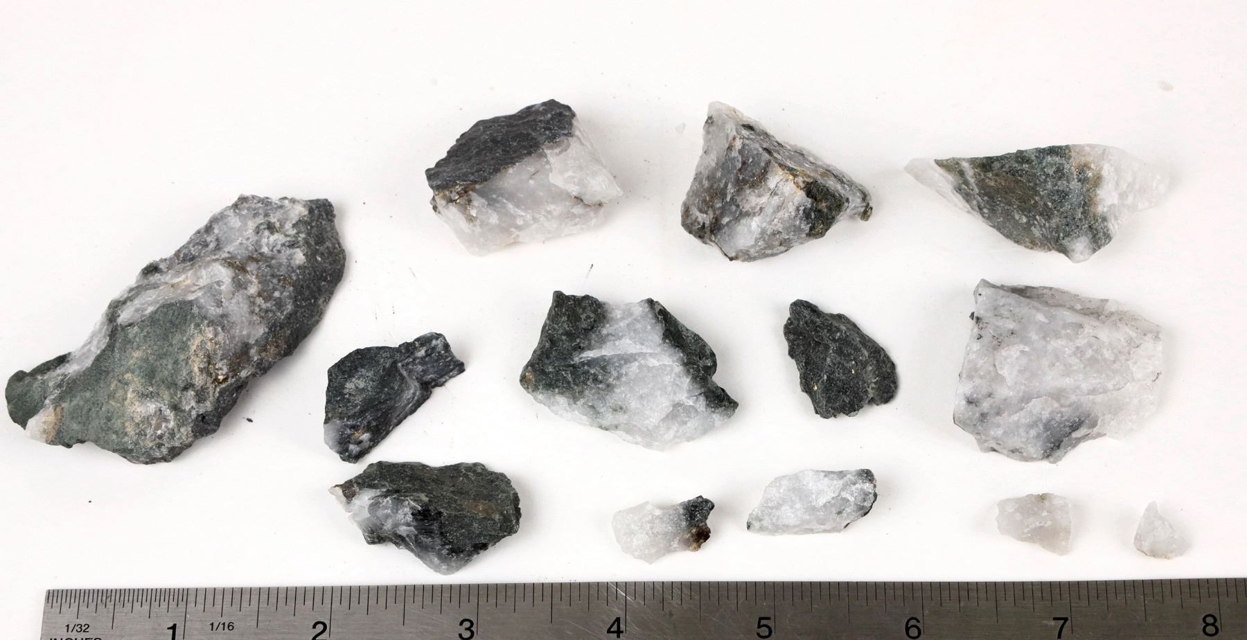 Homestake Mine Ore with Visible Gold from the 5000-5900 level. Dave Shaddrick was a key Mine Geologist at America's most important underground gold mine, the Homestake, for a number of years. We sold a number of his choice specimens in a prior sale and when cleaning out the garage an additional box full of high grade ore specimens, each with one or more specs of visible gold. In some cases the gold is a small wire or leaf or crystalline. Some are microscopic necessitating the use of a hand lens. But each piece has visible gold.