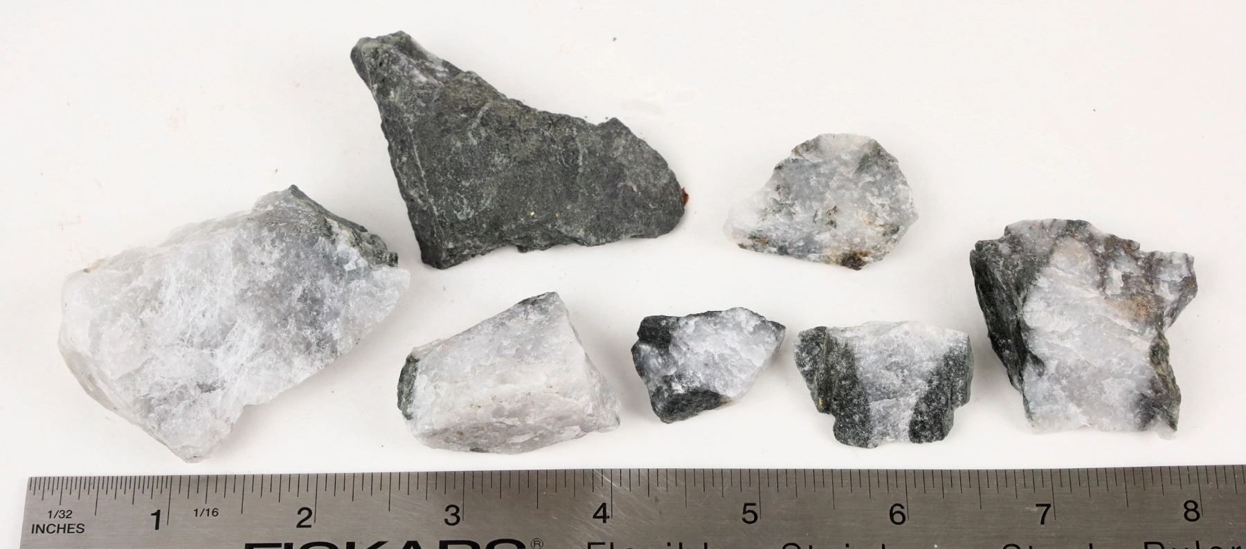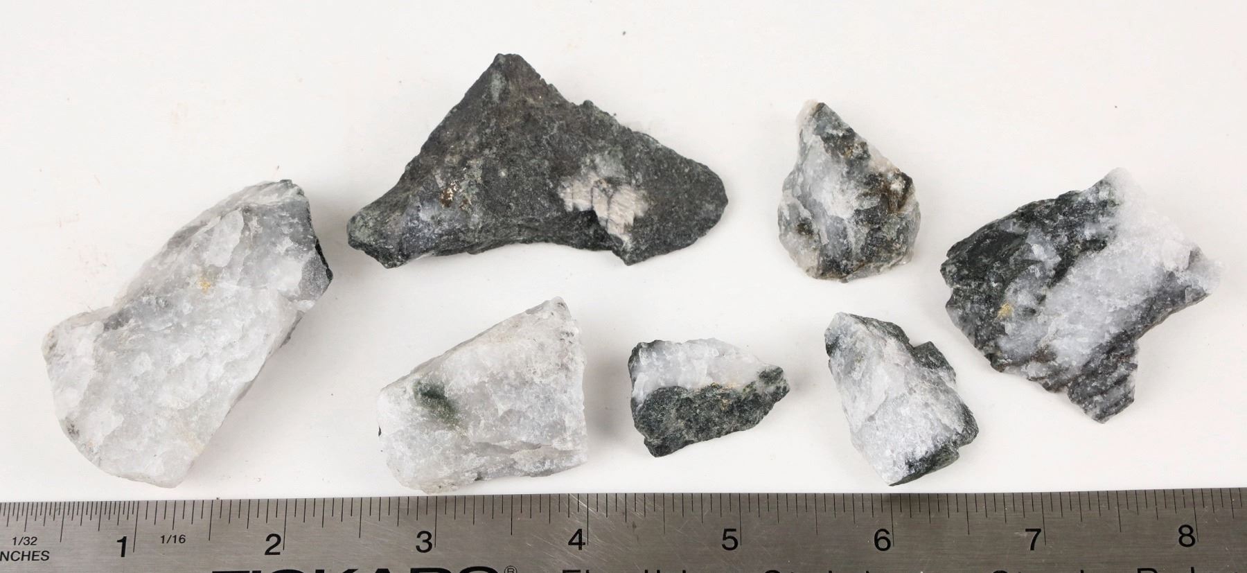 Homestake Mine Ore with Visible Gold from the 5000-5900 level. Dave Shaddrick was a key Mine Geologist at America's most important underground gold mine, the Homestake, for a number of years. We sold a number of his choice specimens in a prior sale and when cleaning out the garage an additional box full of high grade ore specimens, each with one or more specs of visible gold. In some cases the gold is a small wire or leaf or crystalline. Some are microscopic necessitating the use of a hand lens. But each piece has visible gold.