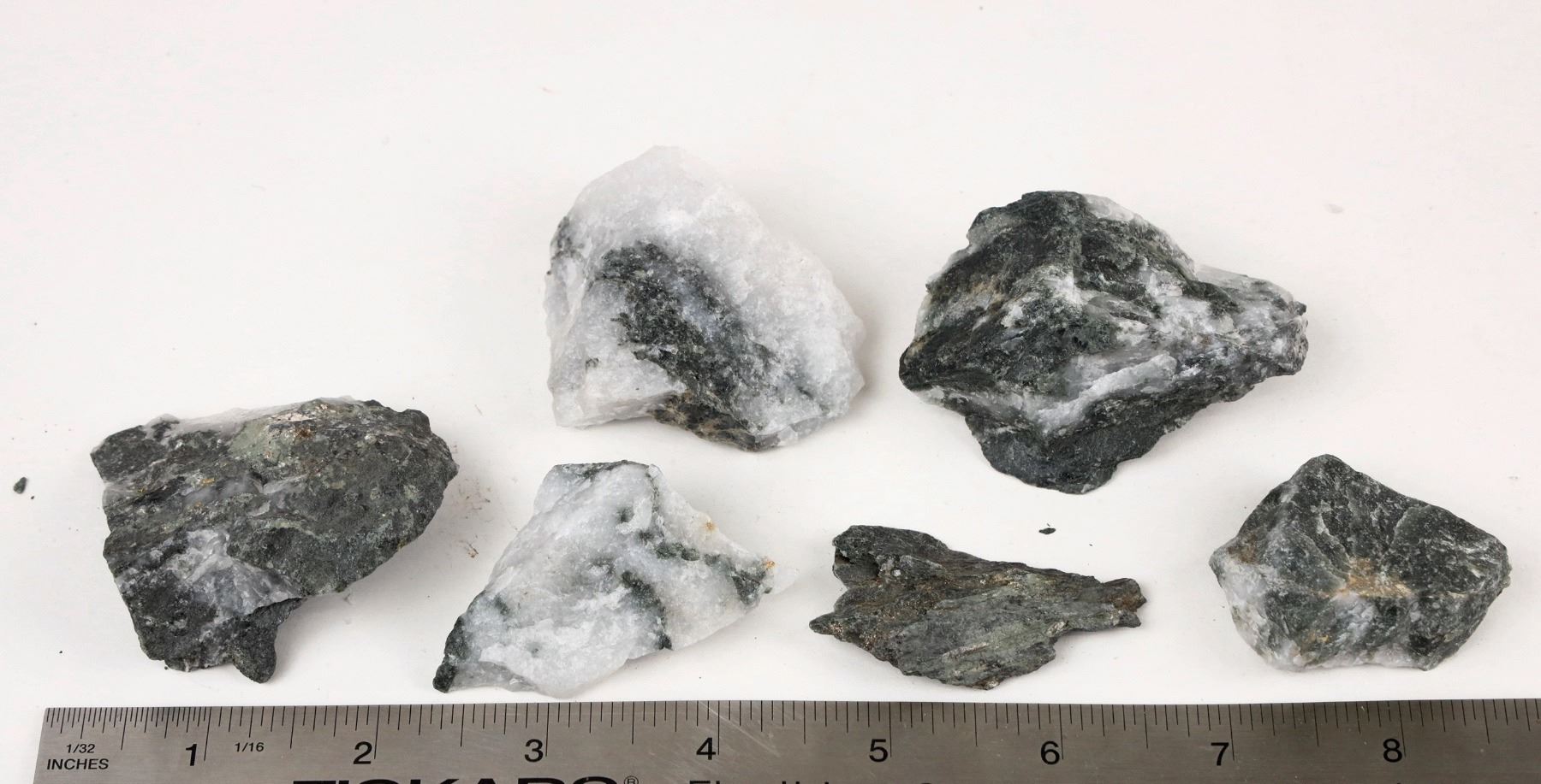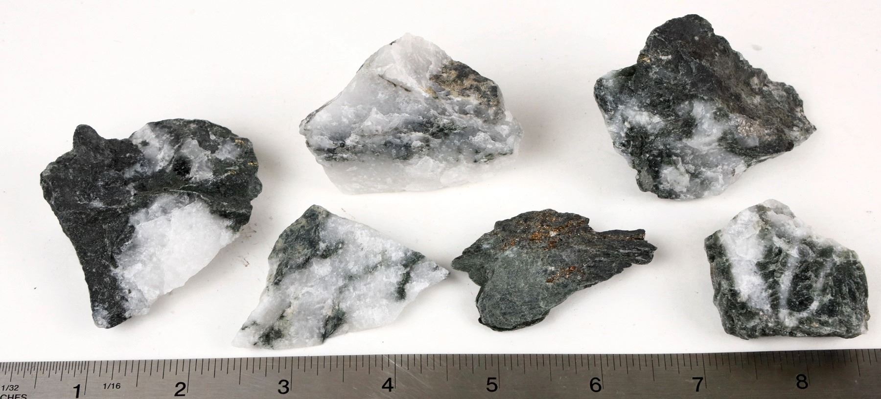 Homestake Mine Ore with Visible Gold from the 5000-5900 level. Dave Shaddrick was a key Mine Geologist at America's most important underground gold mine, the Homestake, for a number of years. We sold a number of his choice specimens in a prior sale and when cleaning out the garage an additional box full of high grade ore specimens, each with one or more specs of visible gold. In some cases the gold is a small wire or leaf or crystalline. Some are microscopic necessitating the use of a hand lens. But each piece has visible gold.