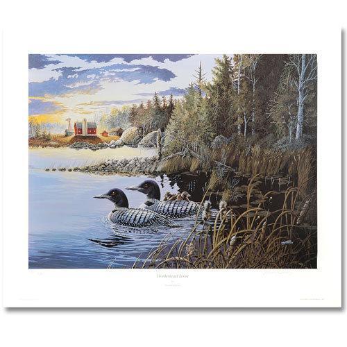 Donald Blakney paints Glorious Outdoor Nature Scenes that take viewers to some of the United States most beautiful locations! Blakney is considered to be one America's premier Outdoor Painters! "Homestead Loon" is a LIMITED EDITION Offset Lithograph that is Hand Signed by Blakney! Measures Approx: 18.50 X 24.50 inches with border, 14.00 X 21.00 inches (image). Donald Blakney has had a 25-year career in the art world creating loving images of nature. He has designed 5 conservation stamps and published 57 images in print. Blakney's extraordinary detail is a result of years of observation at the Blakney Game Farm, and photo research from across the nation. Currently, Blakney is working with Mountain Lions for his upcoming project