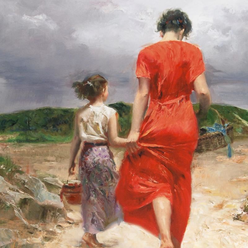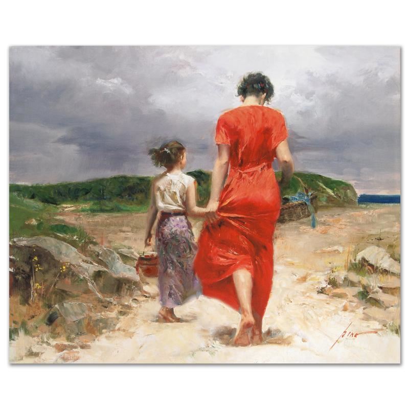 Pino's portraits allow glimpses into intensely personal, intimate spaces, conveying emotion through rich, warm color and sensual brushwork. "Homeward Bound" is a limited edition giclee on stretched canvas that has been hand-embellished by Pino himself, CP numbered and hand signed by Pino (1939-2010). Includes Certificate of Authenticity! Measures approx. 36" x 30" (image).