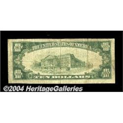 Hominy, OK - $10 1929 Ty. 1 The First NB Ch. # 7927Very Good-Fine, well circulated but absolutely problem-free for the grade. This Osage County bank is rare in both large and small size, with just over a half-dozen pieces known to Kelly as of the last published census. <BR><BR><B>Important notice:</B> Heritage usually auctions material at the rate of 200-250 lots per hour. On some occasions eBay Live bid software or the Internet may not be able to keep up with the pace of the auction. We recommend placing a realistic absentee bid now as insurance to avoid disappointment. Occasionally the auctioneer may eliminate or reject an eBay Live bid, and the auctioneer may also reopen a lot after the close of the eBay live bidding (usually because we missed an audience bid), and may reject your bid even if it shows you as the winning bidder. By bidding via eBay Live, you agree that Heritage may award the lot to another bidder at its sole discretion under the circumstances described above or any other reasonable circumstances. Since eBay bids are not shown to us until we open the lot on the floor, we treat those bids just like floor bids. In most cases the floor responds before the eBay bid is presented to us, due to Internet lag time, so for consistency we have made it a policy that floor bids are always considered first over tie eBay live bids. Also please note that all Heritage lots purchased through eBay Live carry a 20% Buyer's Premium. Please make sure you read the Terms and Conditions before you bid. <BR><BR><B>IMPORTANT ANNOUNCEMENT ABOUT RESERVES:</B> Heritage now divulges all reserves on its web site 7 days before every auction. If you want to know whether the reserve on this lot has been met, and if not, what the reserve amount is, please visit this lot page on the HeritageCoin.com web site, or email: bid@HeritageGalleries.com