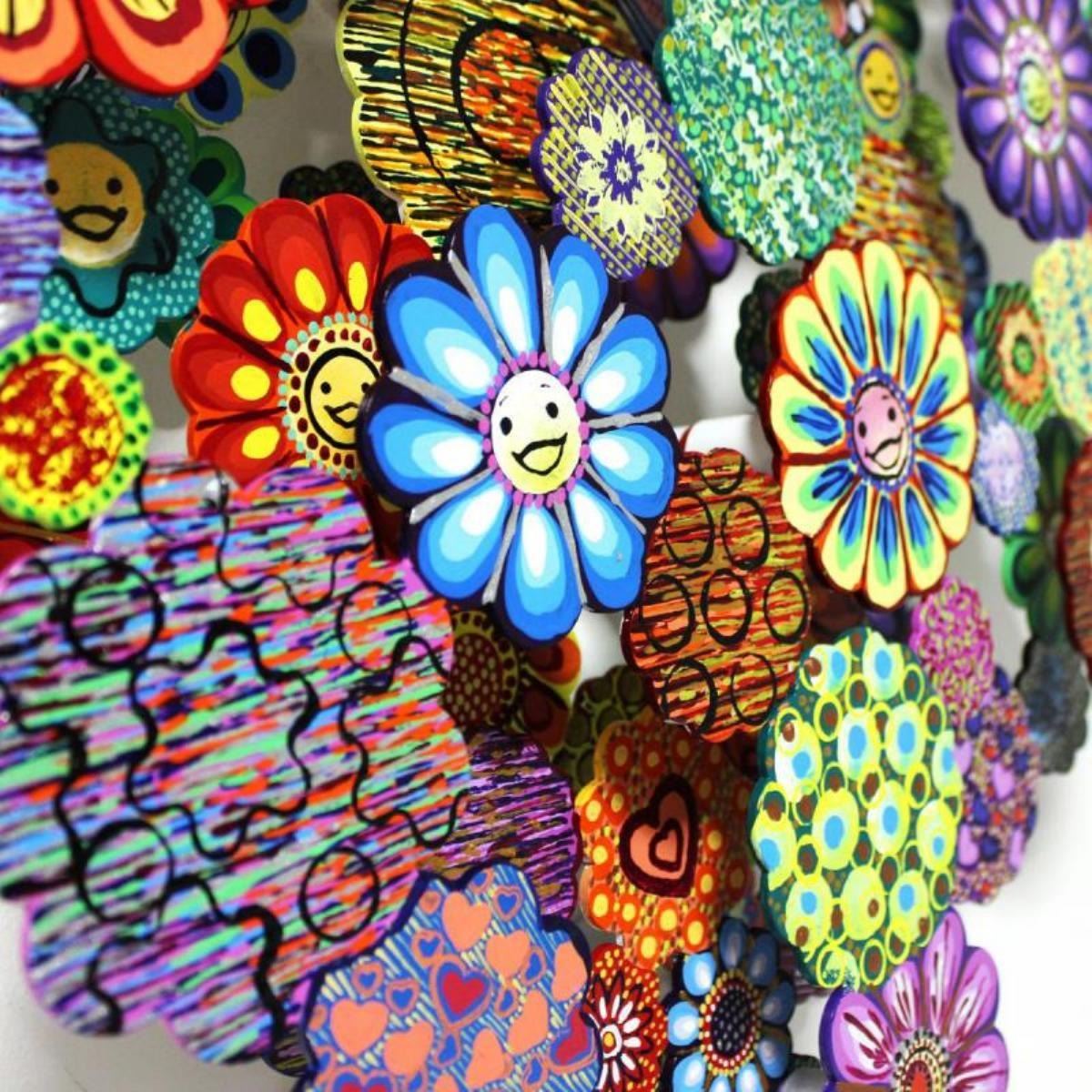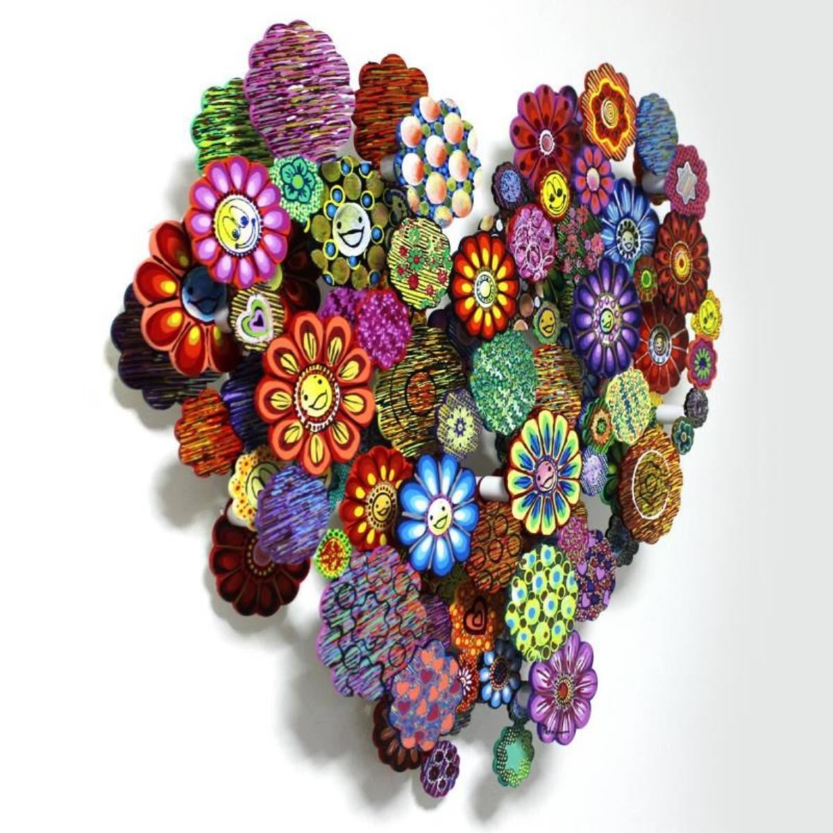 "Hommage to Takashi" is an Original Painting on Cutout Steel by Patricia Govezensky. Hand signed by the artist this piece comes with a certificate of aucthenticity. Measures approximately 25"" x 25"".