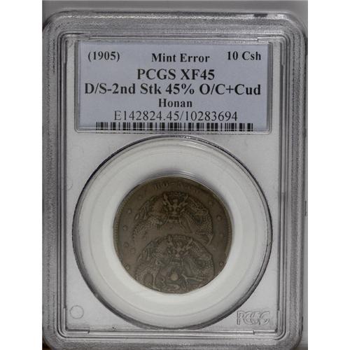 Honan Mint Error 10 Cash (1905), KM-Y108, XF45 PCGS, do