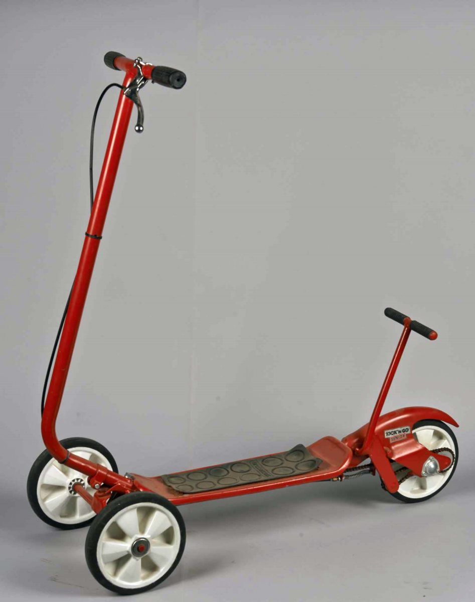 Has hand brake. Circa 1976. Red with rubber tires and white wheels. Condition (Good). Size Approx. 33" x 13" x 34"