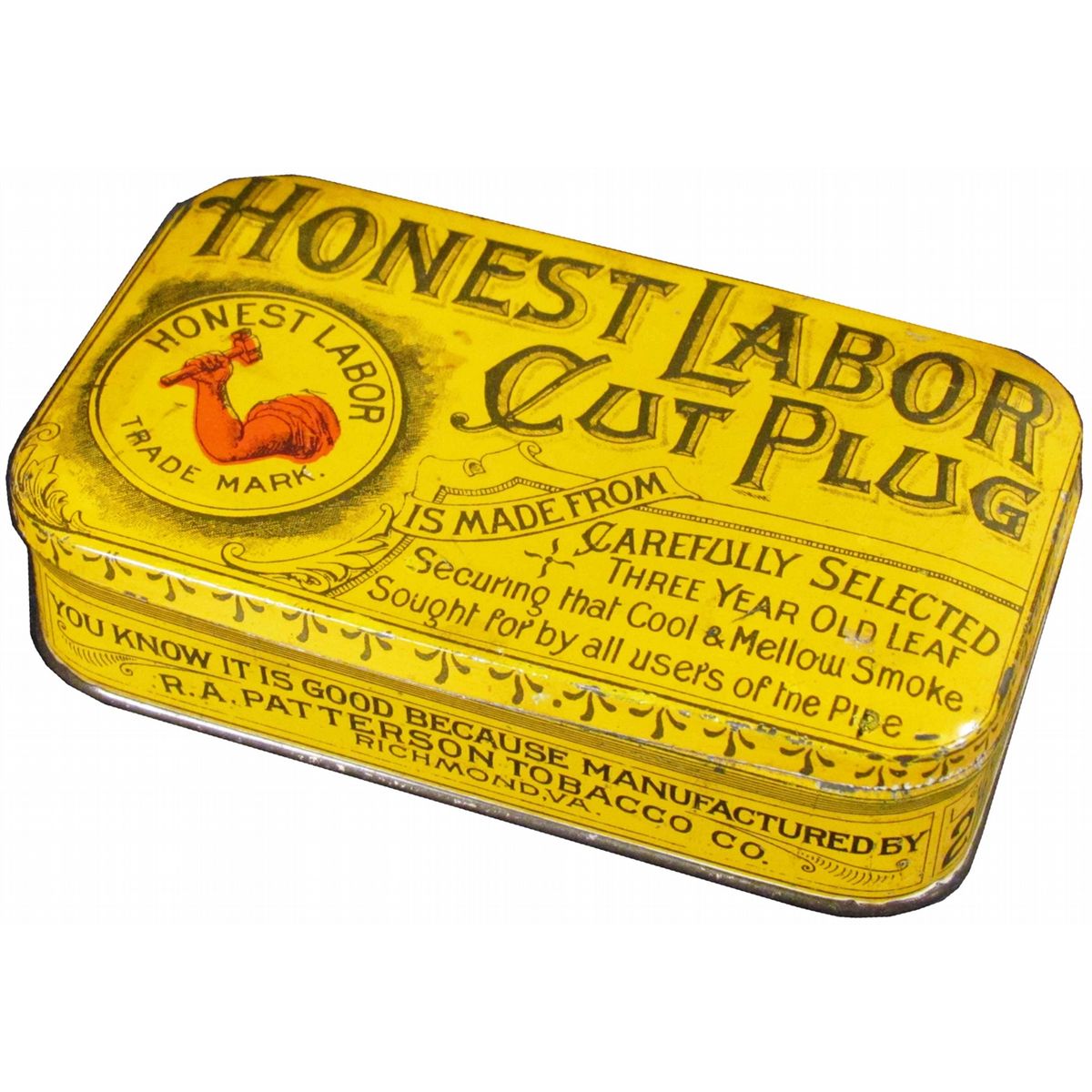 Honest Labor Cut Plug Pipe Tobacco Tin. Very good condition. 4 1/2 X 1 1/4 X 2 5/8 inches.